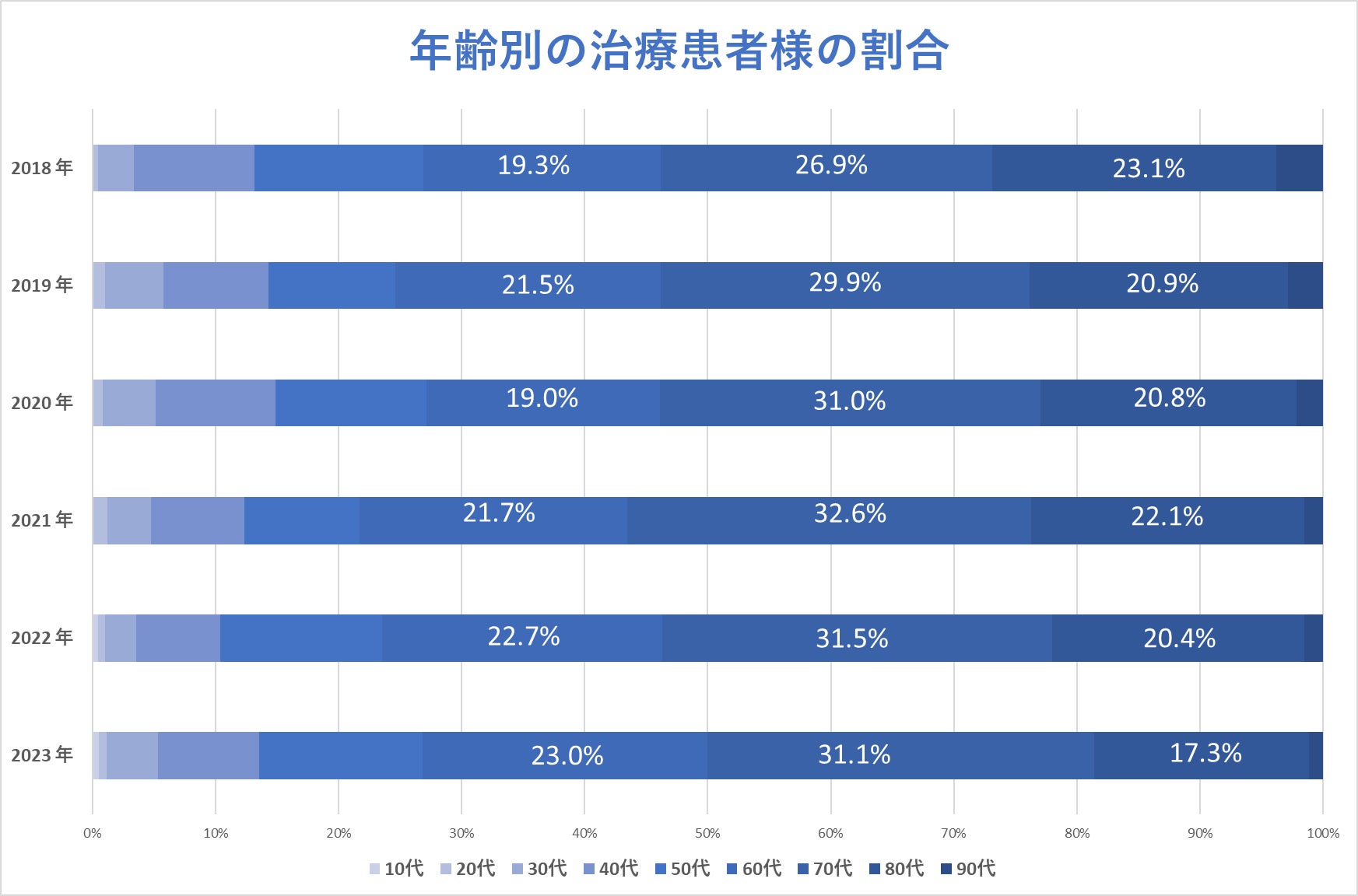 ※2 年齢別の治療患者様の割合(2018年6月~2023年10月まで)