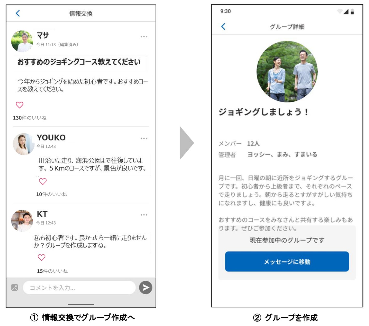 グループの作成や、メンバーの招待など、ユーザーが簡単・無意識に操作できるよう直観的なデザインにし、気軽にグループ活動が行えるようなUI/UX※1を実現しました。