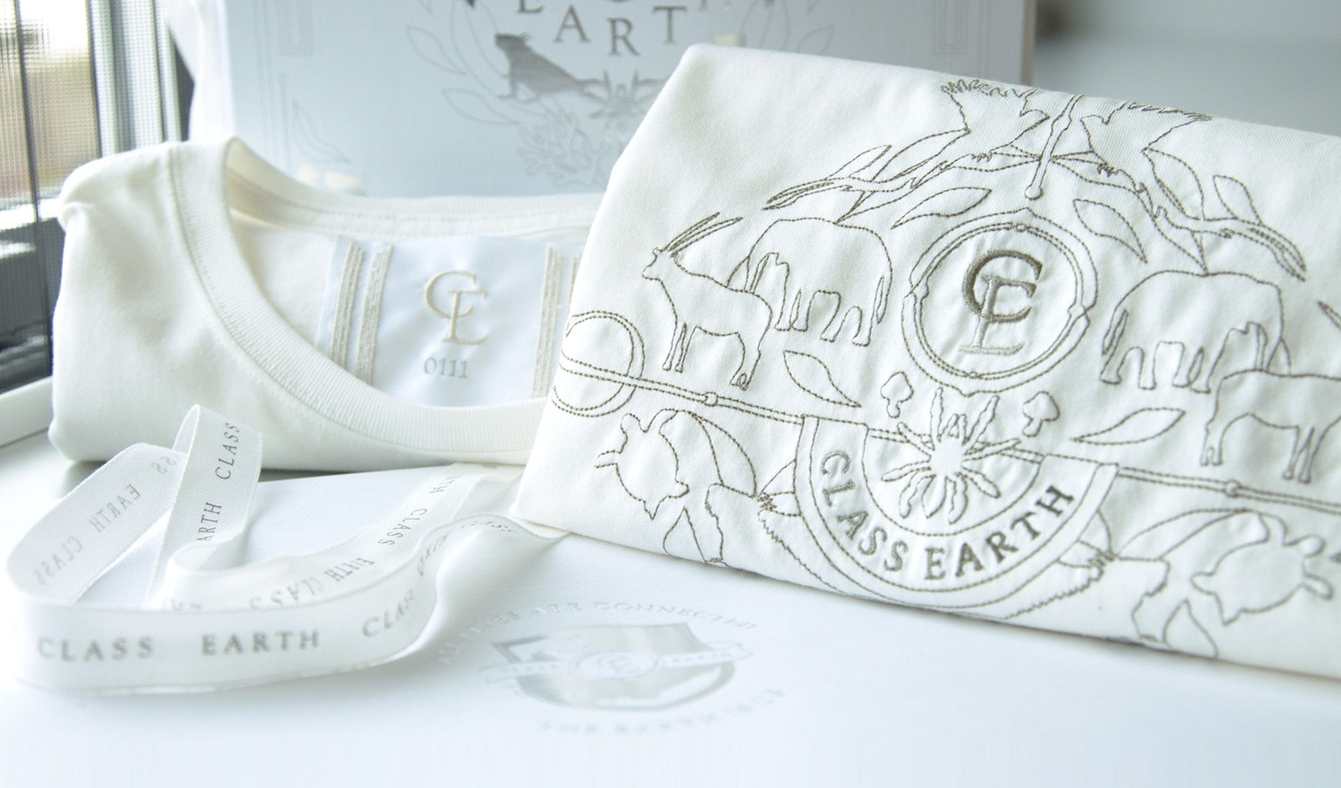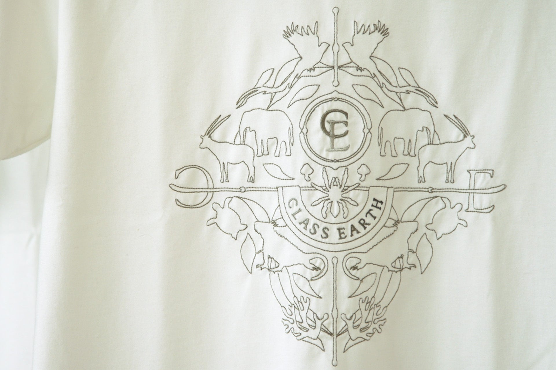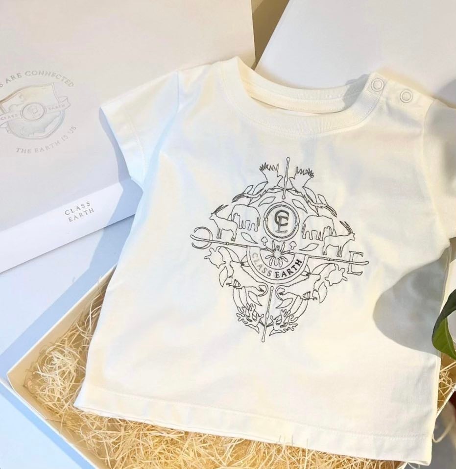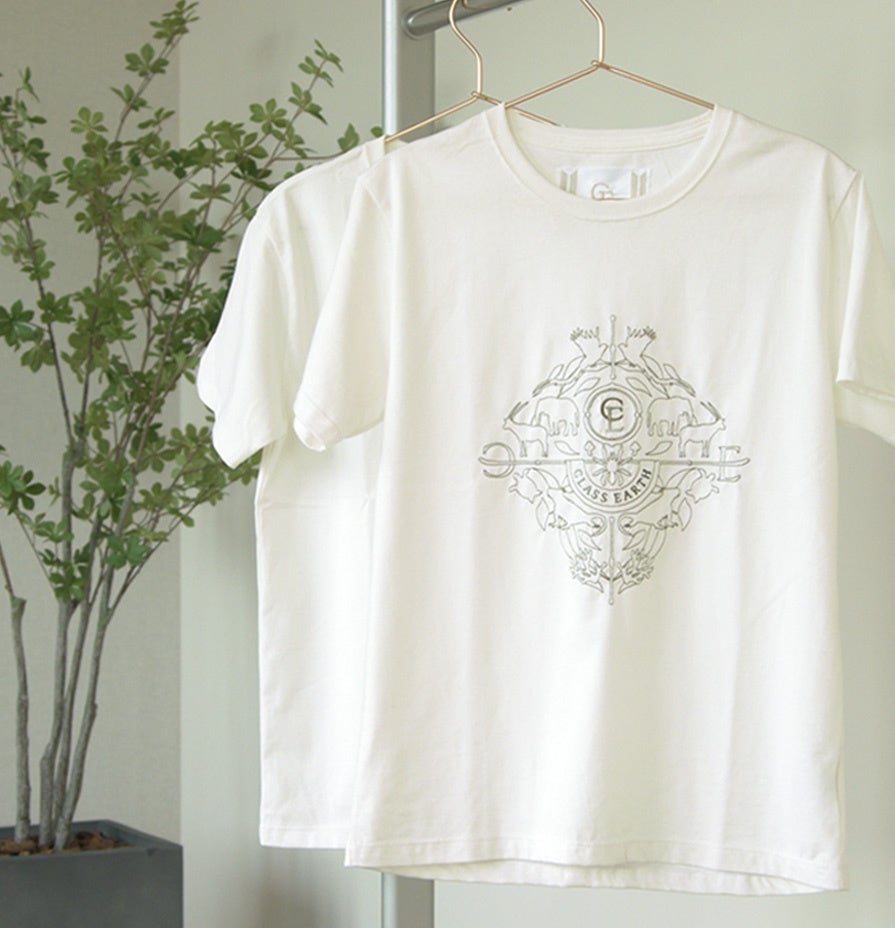 今回選定されたTシャツは、世界の絶滅危惧種をモチーフに最先端AI刺繍機でCLASS EARTHエンブレムを描きました。美しいエンブレムはスケールの大きな刺繍でありながら、一本の糸を染めながら刺繍するため糸の切れ端が少なく、刺繍特有の裏の硬さを感じさせません。