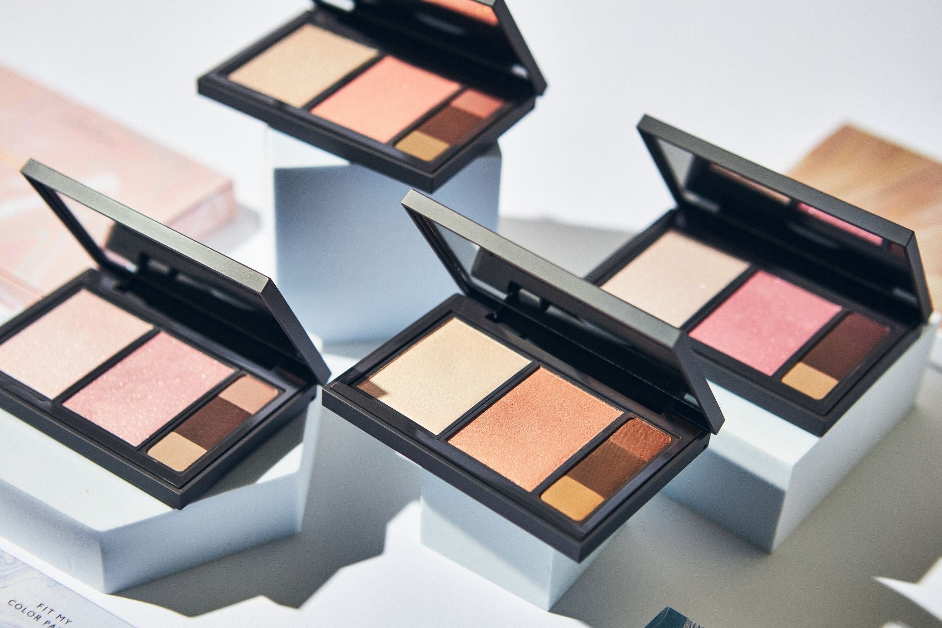 「フィット my カラーパレット」は、ハイライト・チーク・アイブロウが1つになったオールインワンパレット。すべてアイシャドウとしても使えるので、これ1つでメイクが仕上がります。