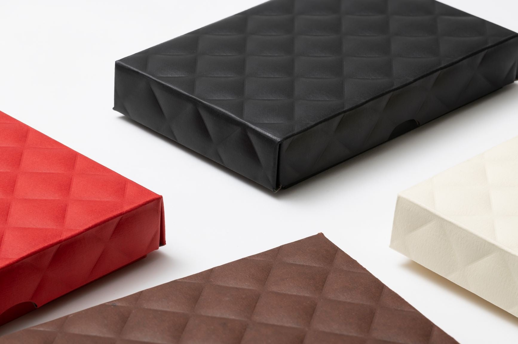 これが紙?キルティング調の革のような質感を再現した「ハイエンボスボックス」のテスト販売を開始!