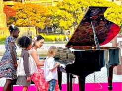 漆芸家・人間国宝 室瀬和美氏による「Peaceピアノ(葛飾北斎のグレイトウェイブ)」のお披露目とアーティスト・子ども達の演奏による音楽祭