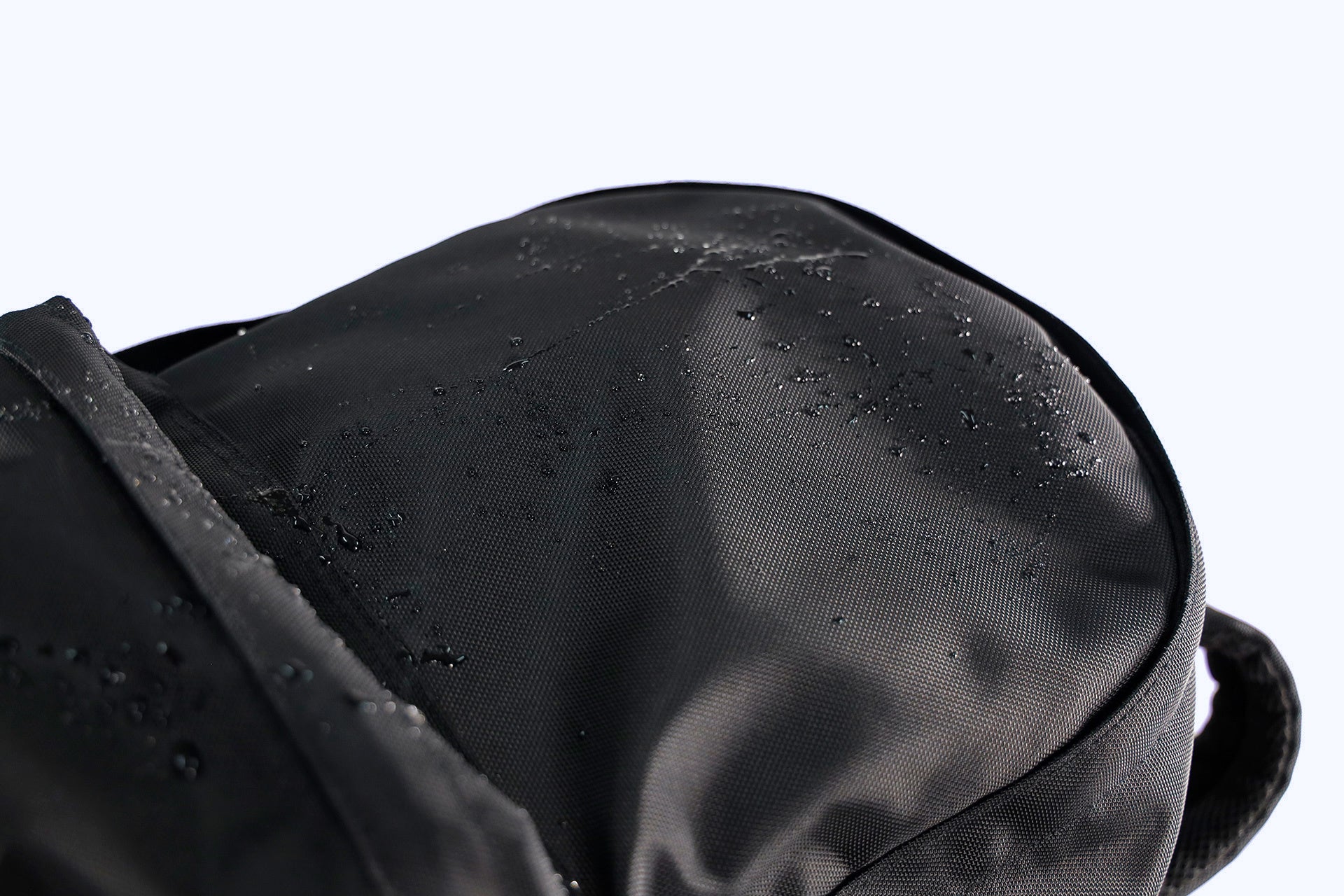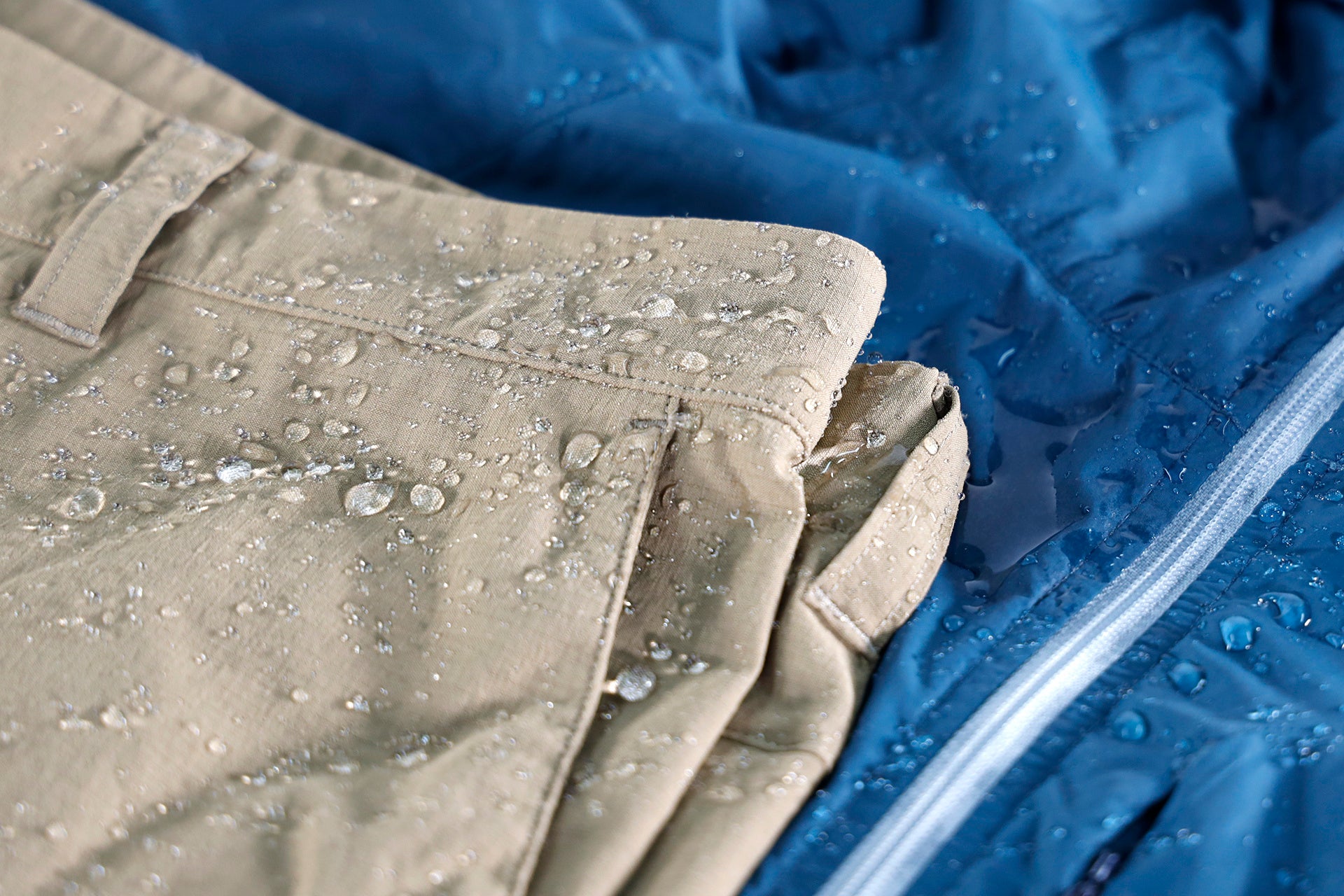 従来の防水スプレーは主にフッ素系、シリコン系に分けられ、フッ素系は摩擦に対する弱さ、シリコン系は油に対する弱さが弱点でした。カーボンプロはフッ素系ですが、特徴的な保護膜が伸縮性と耐摩耗性を持つため、シワ部分や摩擦にも強さを発揮します。