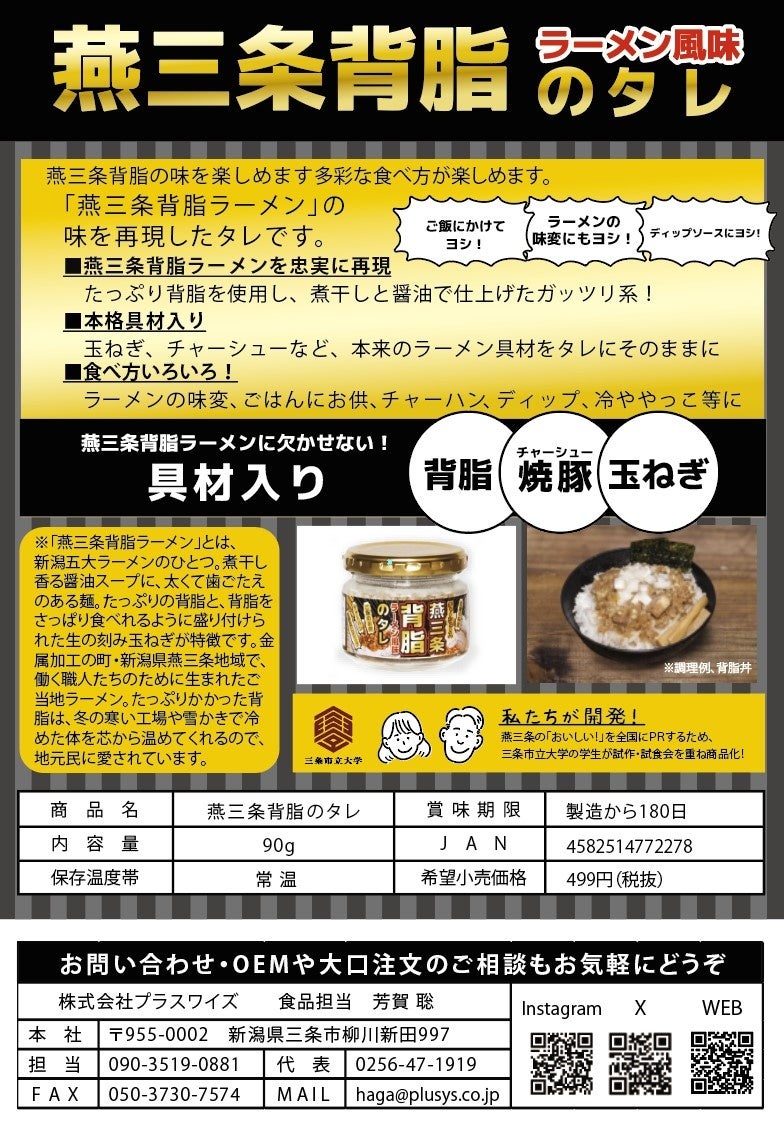 新潟・燕三条地域のご当地グルメ『 燕三条系背脂ラーメン 』 の味わいをご家庭で手軽に楽しめる万能調味料『燕三条背脂のタレ』が 2025年 7月3日 より 発売!
