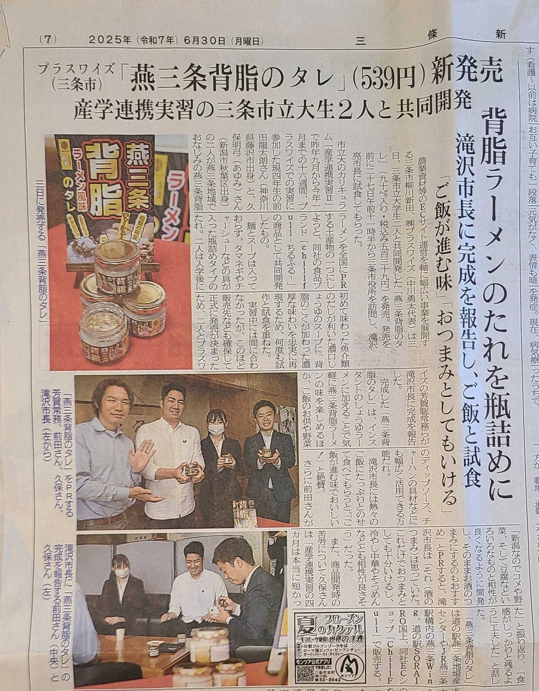 燕三条背脂のタレが掲載され、