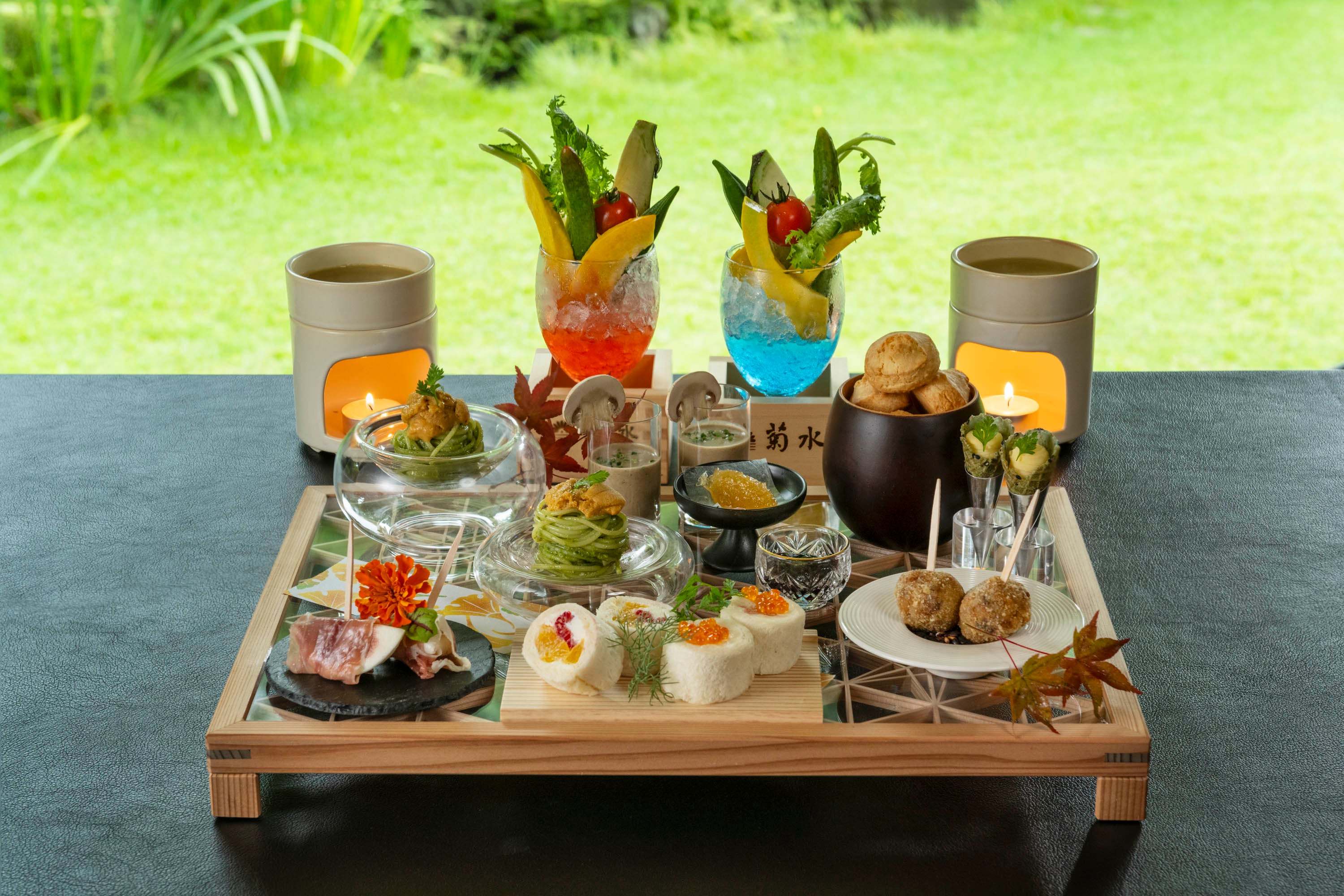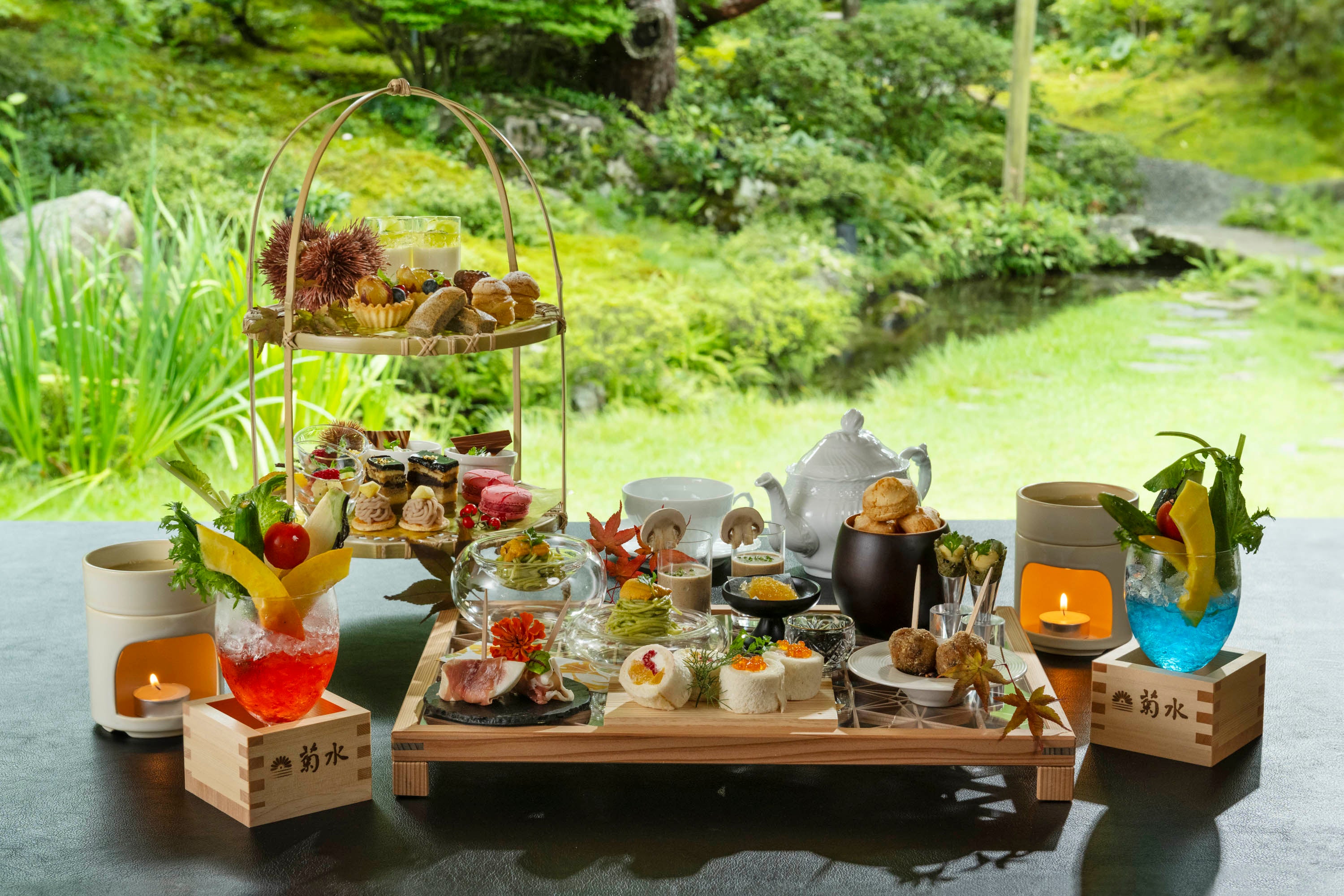 【南禅寺参道 菊水】―2025年10月よりアフタヌーンティー「山紫水明」提供開始― 竹細工職人・大江啓司氏のティースタンドと共に旬の味覚を楽しむ優雅なひとときを ~ウエルカムシャンパン付~