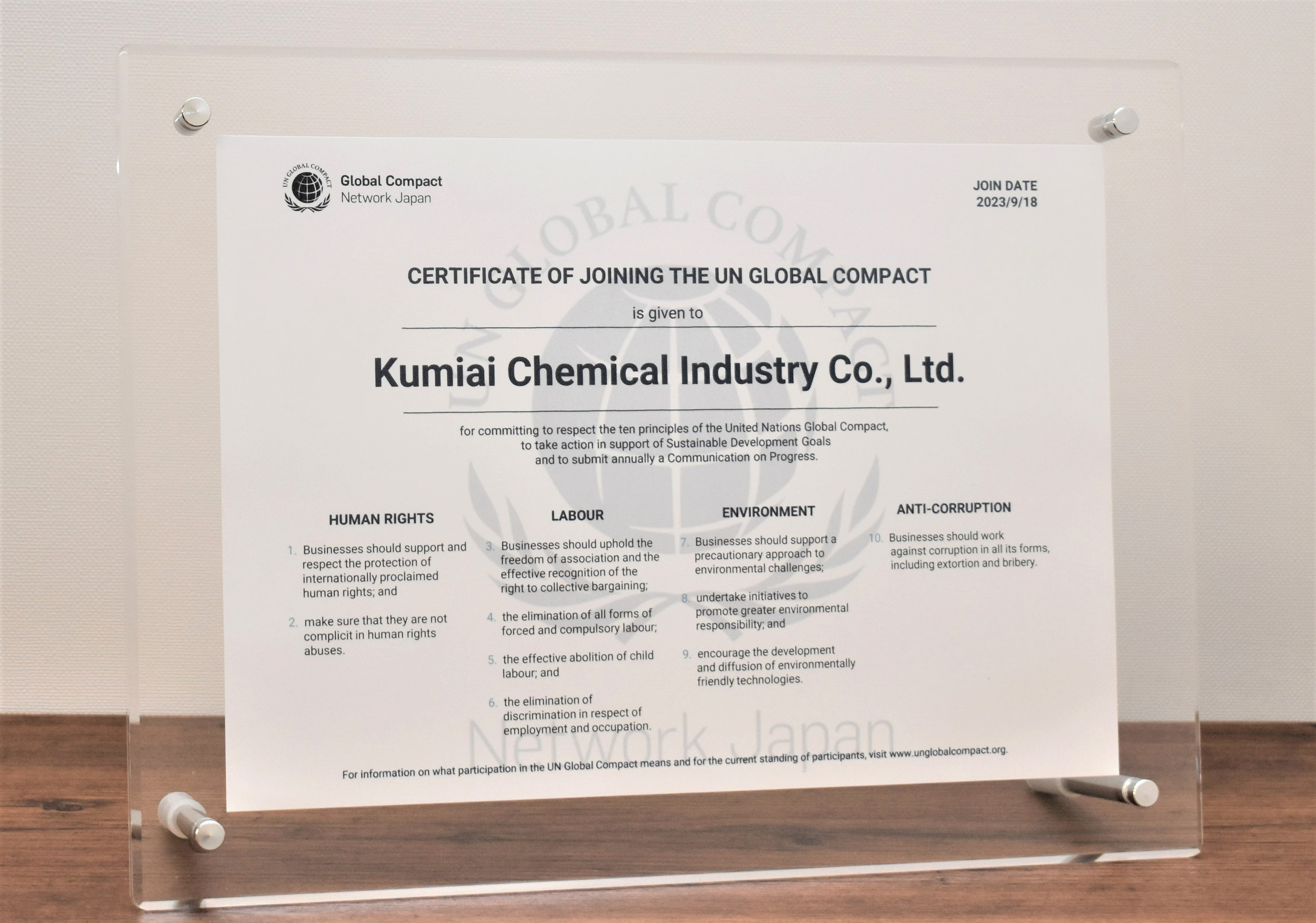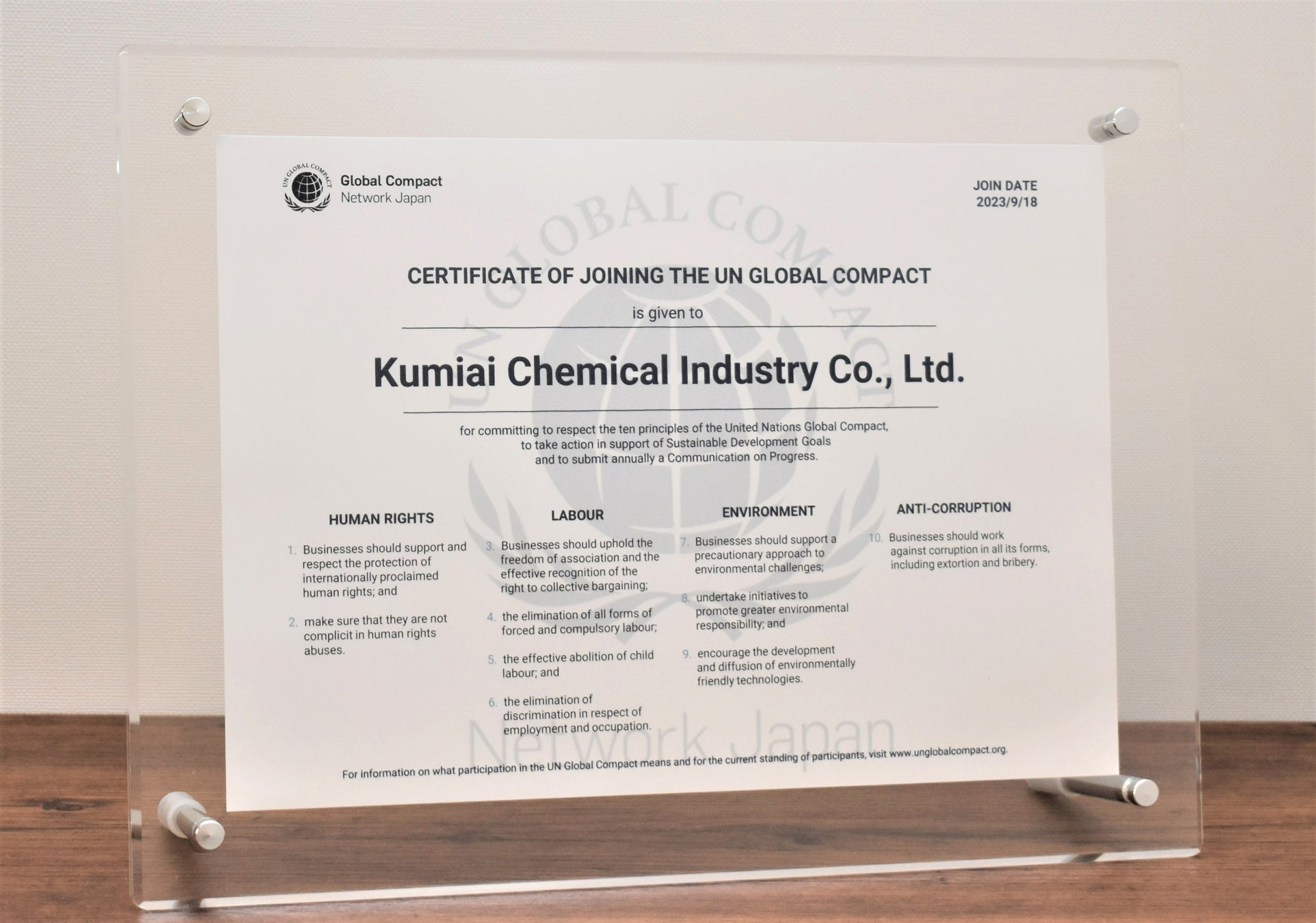 クミアイ化学は、UNGCの人権、労働、環境、腐敗防止の4分野に関わる10原則を支持し、実践することで、グローバル企業として持続可能な社会の実現を目指します。