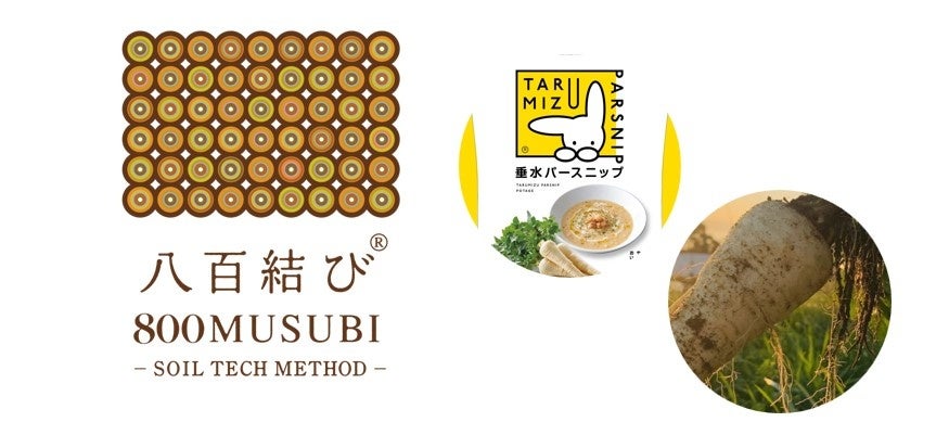 なお、「八百結び農法®」により収穫された垂水パースニップを使用した商品には、八百結び農法®認定マークを付与して販売されます。「おいしい」と「あんしん」のその先に「地球の未来」をちゃんと考える「八百結び農法®」で育まれた、垂水ならではの健康的な垂水パースニップ商品をぜひご賞味ください。