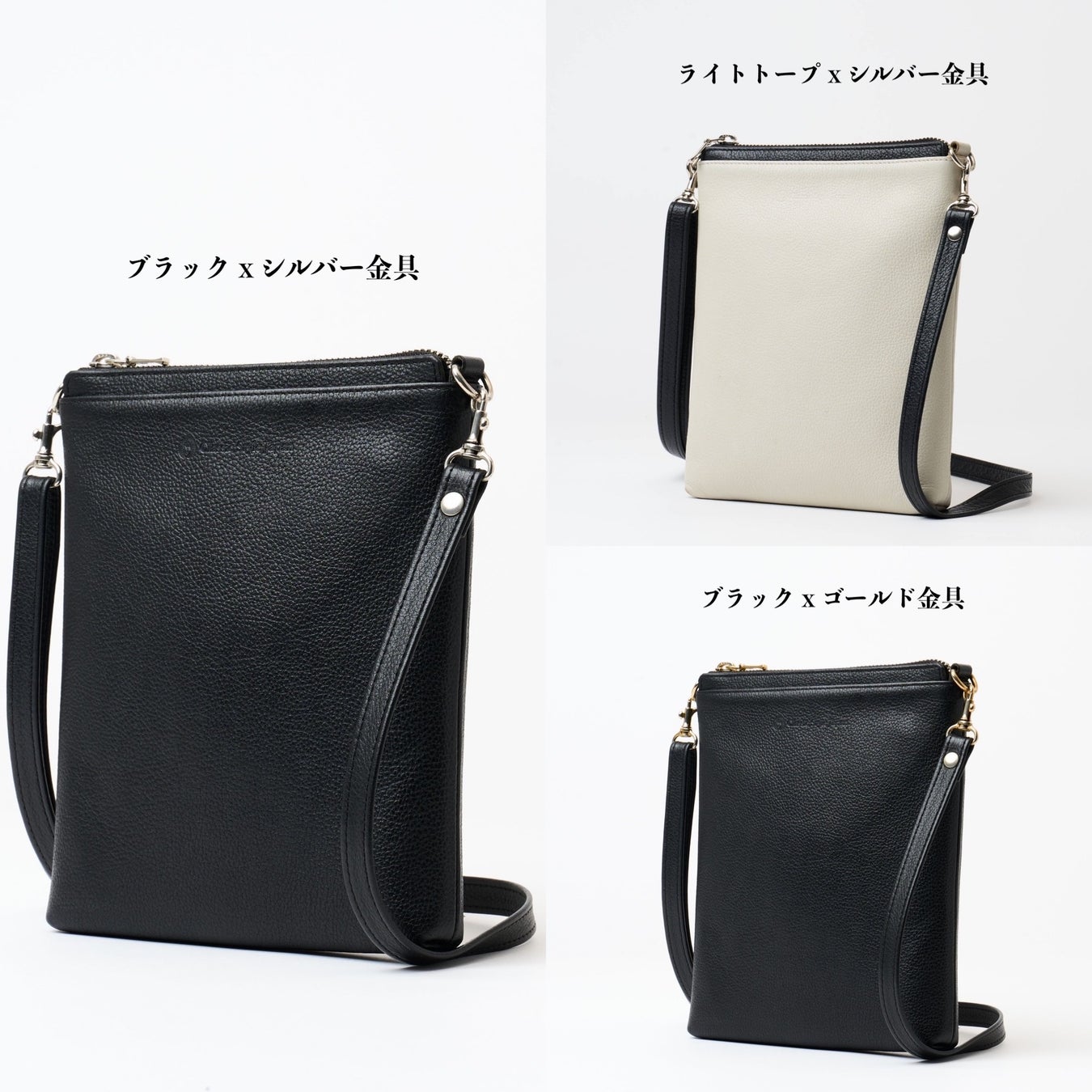 バッグ本体とショルダーストラップに使用され、シンプルながら高級感を引き立てます。