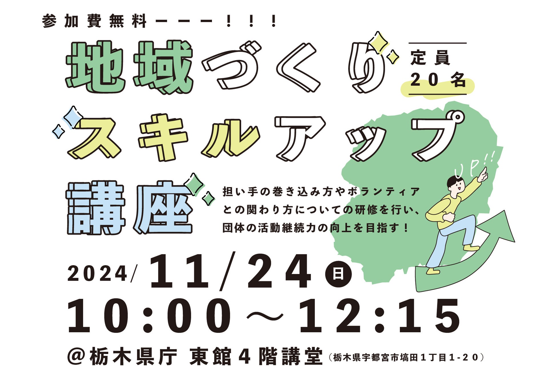 栃木県内の地域づくり実践団体がメンバー・ボランティアの巻き込み方を学ぶ「地域づくりスキルアップ講座」参加者募集中