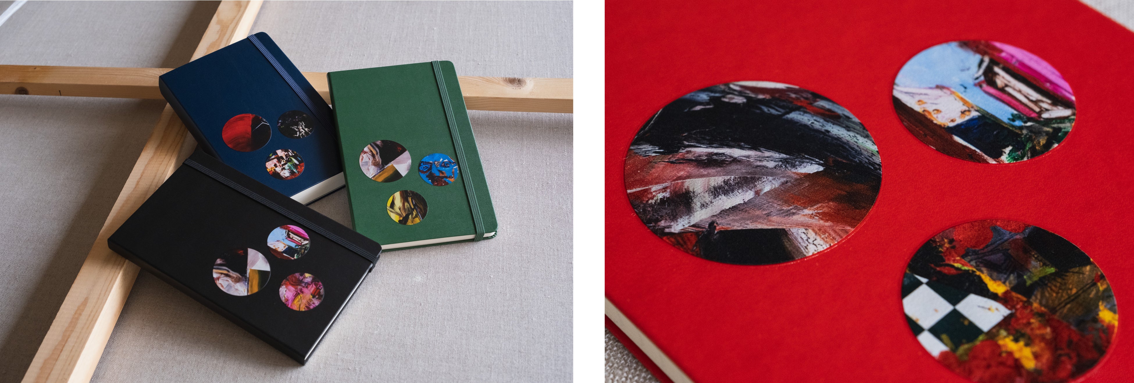 限定版ノートブックとLive Printには、さまざまな材料にダイレクトに美しい特殊印刷ができるローランド ディー.ジー.のUVプリンターが使用されており、日本を代表する現代アーティスト井田氏の世界を鮮やかに表現したモレスキンの限定版ノートブックとカスタマイズされたノートブックを手に入れられます。
