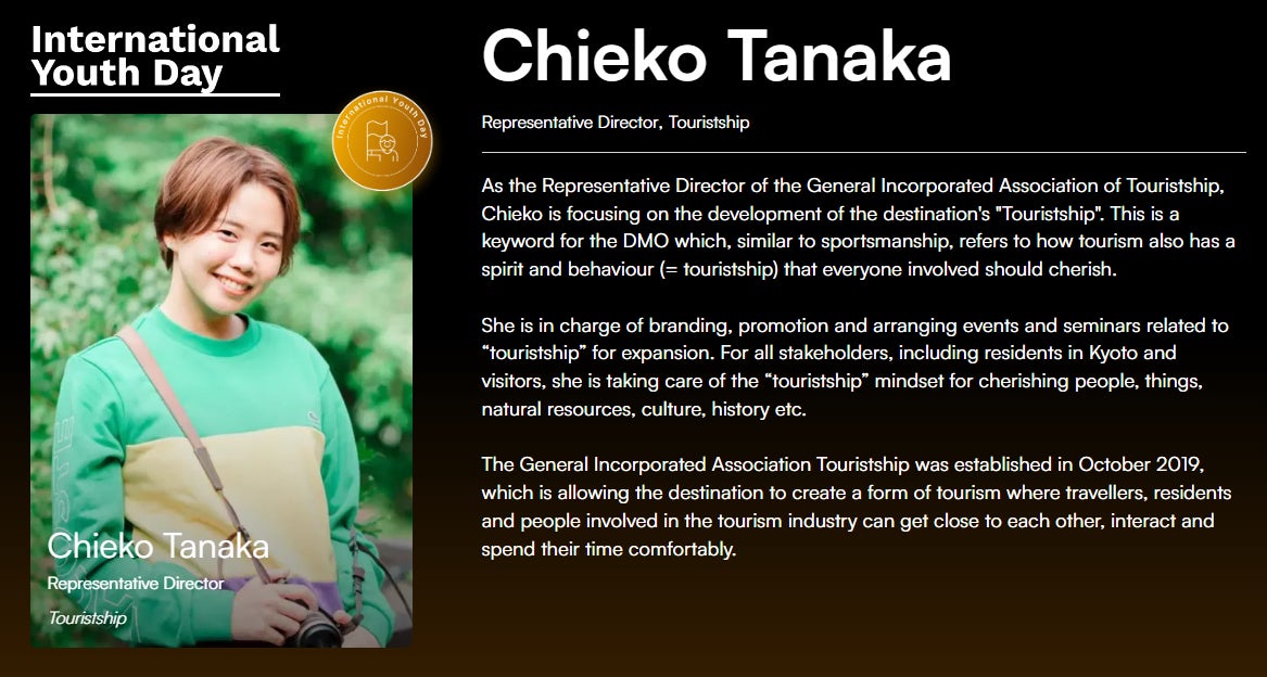 京都大学在学中に観光の非営利団体を立ち上げ、8月12日国際青少年デーで日本人唯一ノミネートされた田中千恵子がコメントを発表。