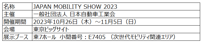 ●JAPAN MOBILITY SHOW2023 (公式HP:https://www.japan-mobility-show.com/)