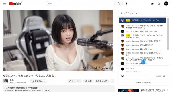 AIタレント「もも」、24時間365日のYouTubeライブ配信を開始