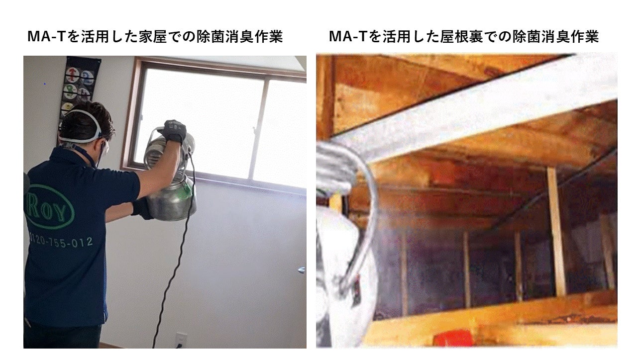 リフォームを行った際、より清潔な状態で施主様にお引渡しする為に除菌消臭作業にてMA-T®採用液剤を活用。又、昨今問題になっている害獣駆除作業の際はMA-Tに切り替えた事により、以前使っていたアルコール消毒と違い火災リスクの軽減、労働環境の良化につながっています。