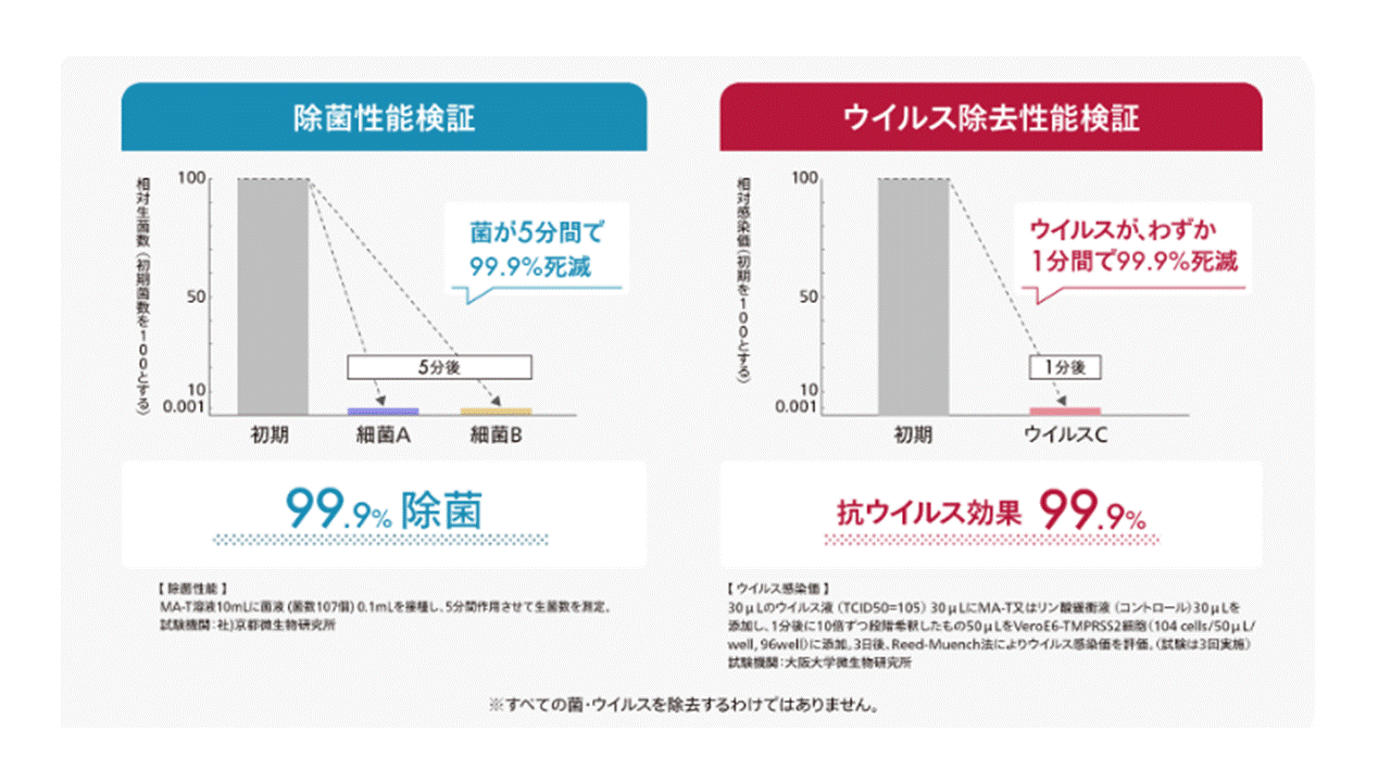 MA-T®システム採用製品を展開。菌・ウイルスを狙い続けるターゲット除菌、アルコール・次亜塩素酸不使用の除菌剤を展開開始。
