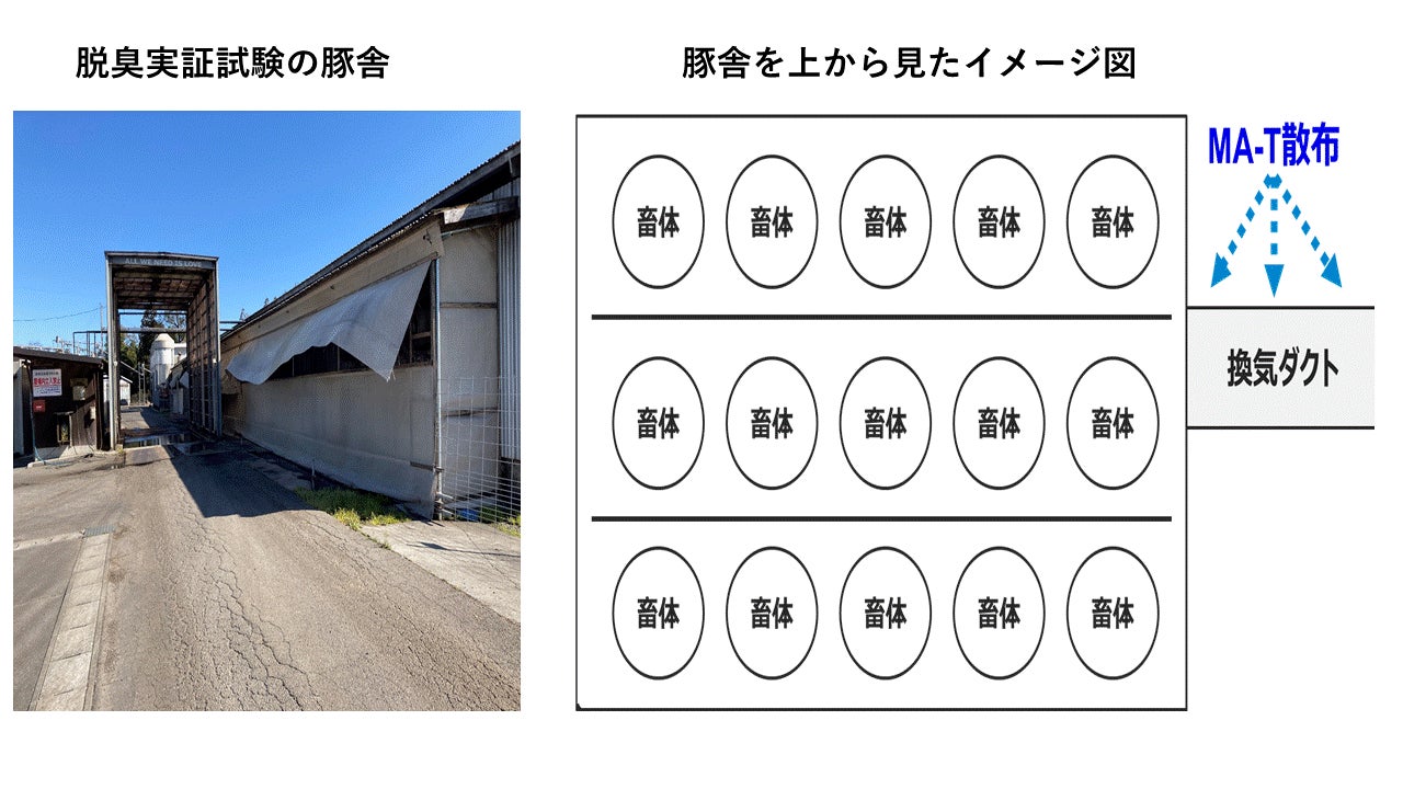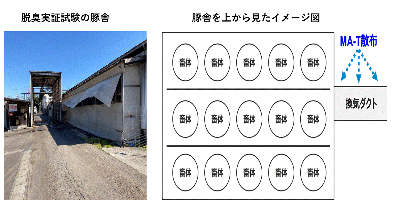 町内の畜舎や糞尿処理施設での臭気対策としてMA-T®システム採用液剤を活用した脱臭実証実験をBMSA(特定非営利活動法人バイオメディカルサイエンス研究会)に協力いただき実施中。畜産の盛んな同町で長年の課題となっている家畜由来の臭気を低減し生活環境の改善をめざしています。