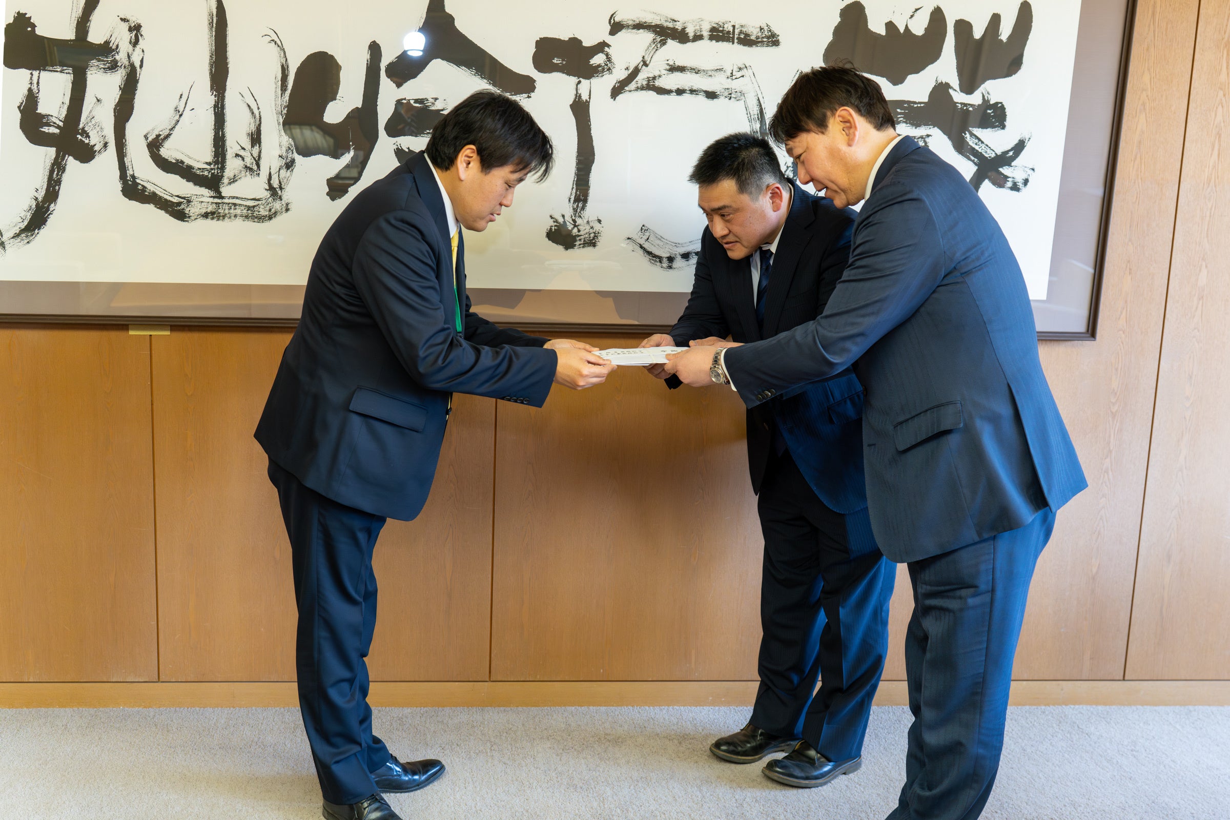 令和6年3月11日(月)、所沢市役所にて、小野塚勝俊 所沢市長に目録をお渡ししました。