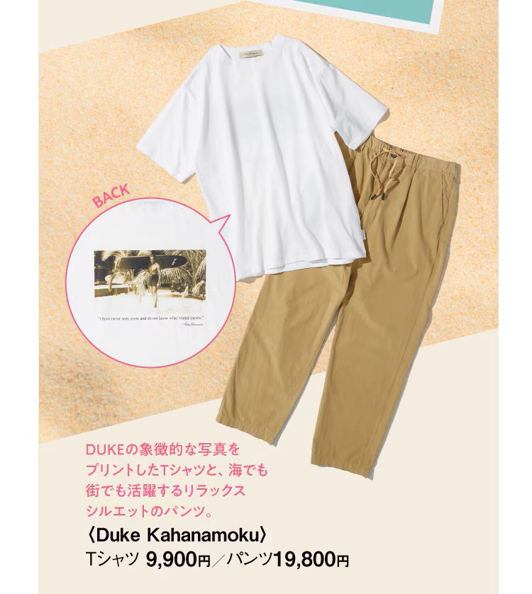 DUKEが生まれ育ったハワイ、そしてアロハスピリットを体現したデューク・カハナモク・コレクションは、全てのアイテムに厳選されたオーガニック素材やトレーサブルコットンが採用され、最高の素材とリラックスできるデザインにこだわっています。