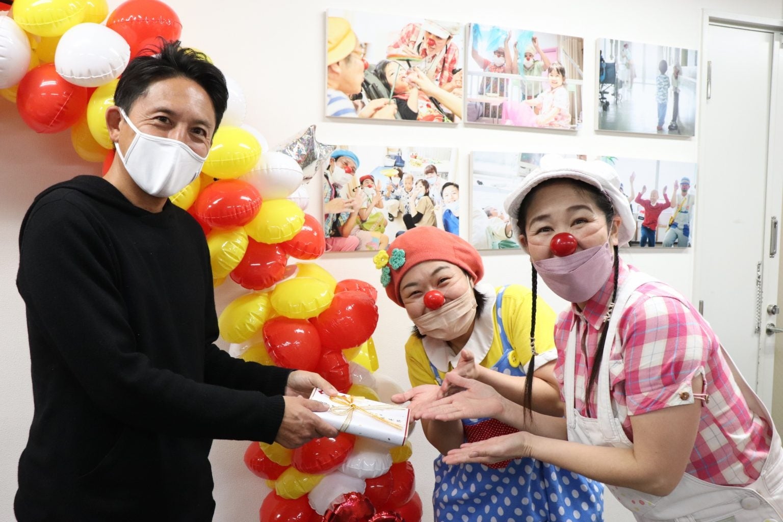 橋本選手は、ガンバ大阪に在籍中に、入院中のこどもたちや家族を応援したいと当協会に連絡をくださり、そこから13年間、クリニクラウンの活動を応援してくださっています。