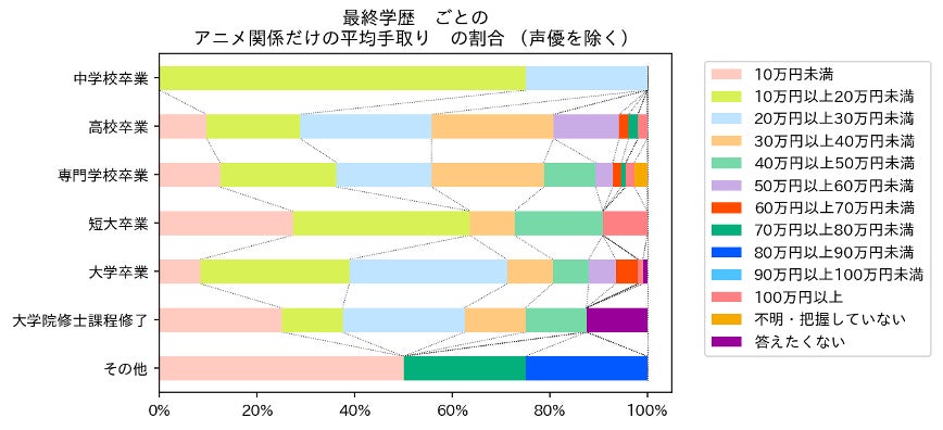 (図10:声優を除く学歴別アニメ関連の収入)