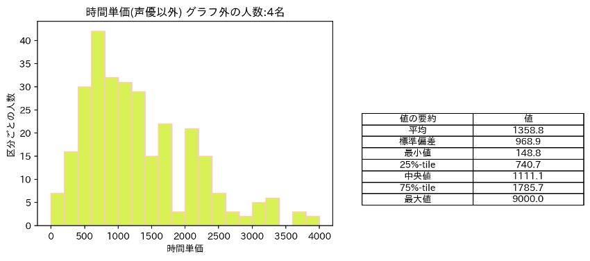 (図12:声優を除くアニメ業界職種ごとの時間単価の分布)