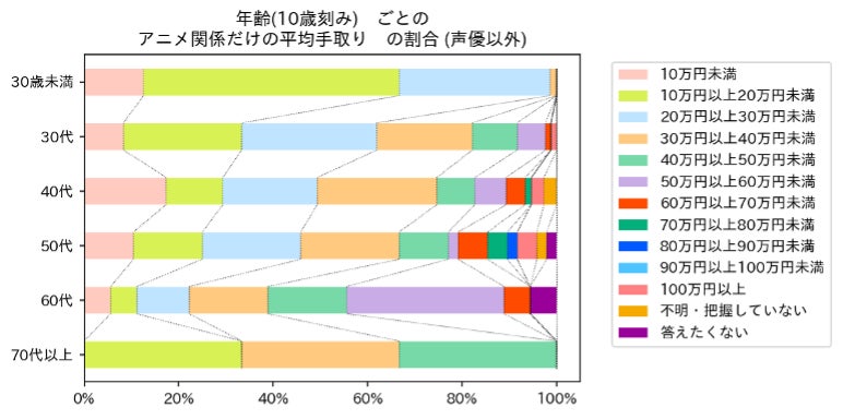 (図7:声優を除くアニメ業界従事者の年代ごとアニメ関連月収)