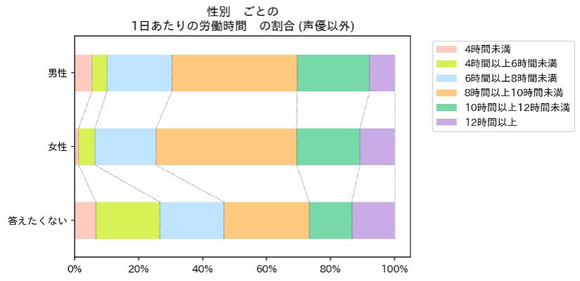 (図5:声優を除くアニメ業界従事者の男女別1日あたりの労働時間)