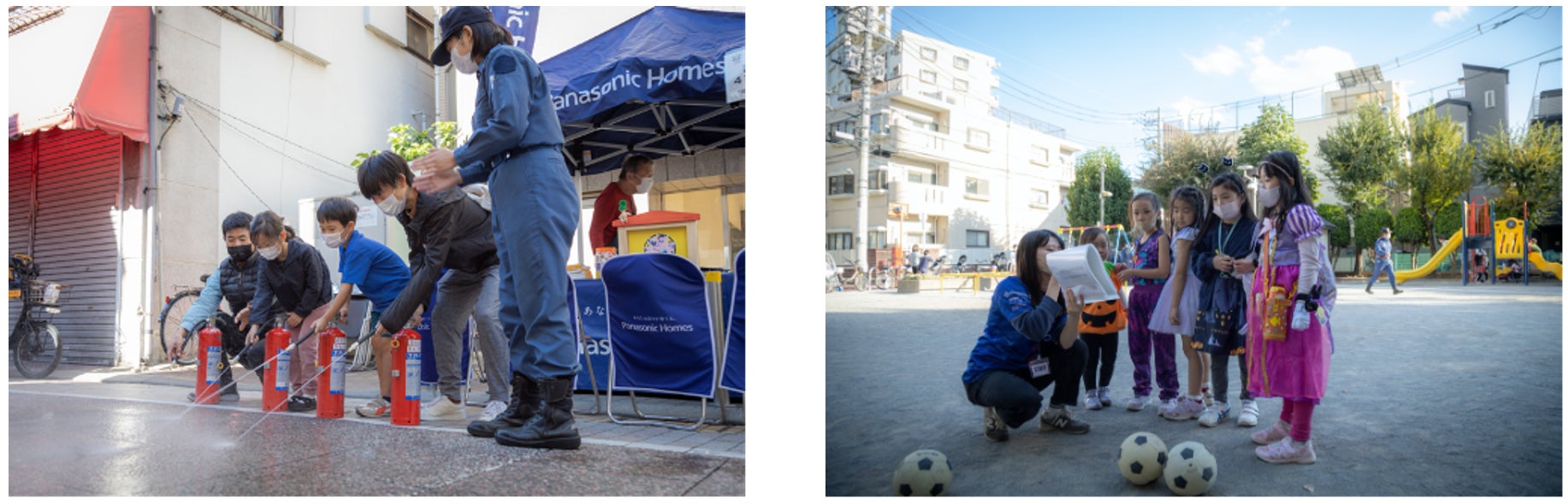 これからは防災にもっと力を入れていこう。その流れで、2021年よりパナソニック ホームズに加え、当社HITOTOWA INC.も防災まちづくりに関わることになり、サッカー防災®︎ディフェンス・アクションイベントをはじめ、体験型のイベントの実施により、地域住民の防災の知識と意識の向上に力を入れてきました。
