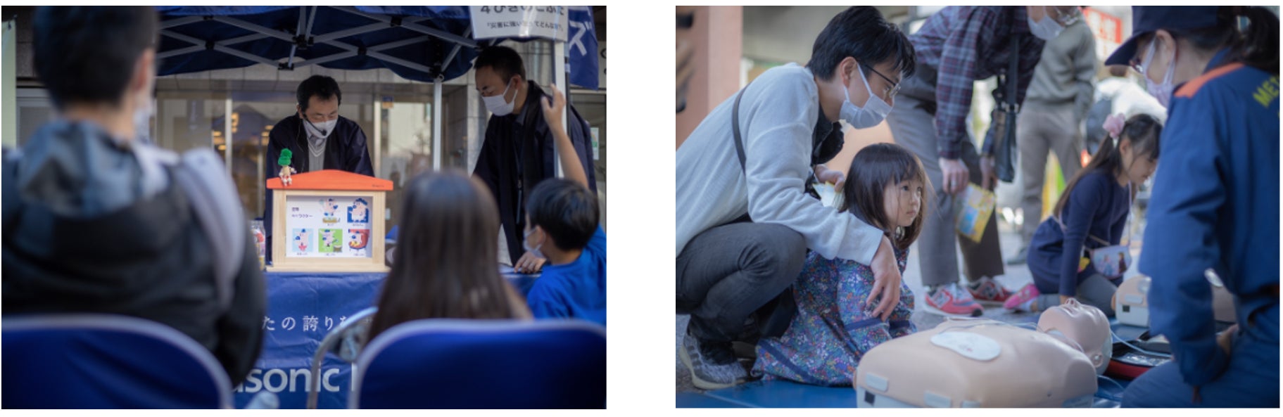 HITOTOWA INC.は、戸越銀座商店街・パナソニック ホームズ株式会社の取り組みに加わる形で、2021年から取り組みを開始。まちづくりと防災の専門家の知見を活かしながら、「防災街づくり」の企画と運営に携わっています。過去3回のイベントでは、近隣住民を中心に、延べ約6000人の方が参加。参加後のアンケートでも、本イベント参加により防災意識が高まったという結果につながる(後述)など、参加者の防災意識が着実に上がっています。