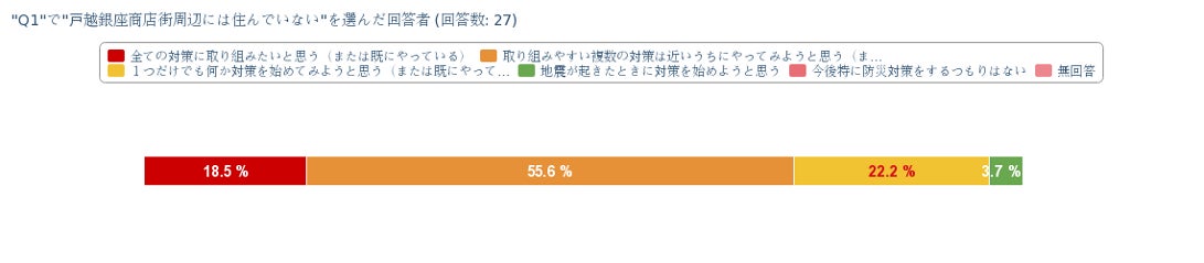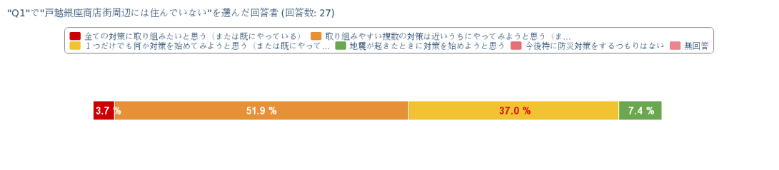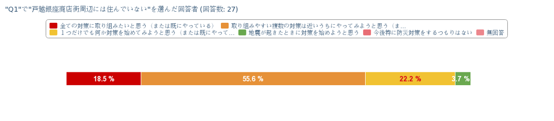 前回(2023年5月28日)開催時のアンケートで、本イベント参加前と参加後の防災への意識がどのように変化したかを確認。加えて、戸越銀座商店街周辺にお住まいの方(徒歩15分圏内)とそれ以外の方との回答の内容を比較しました。
