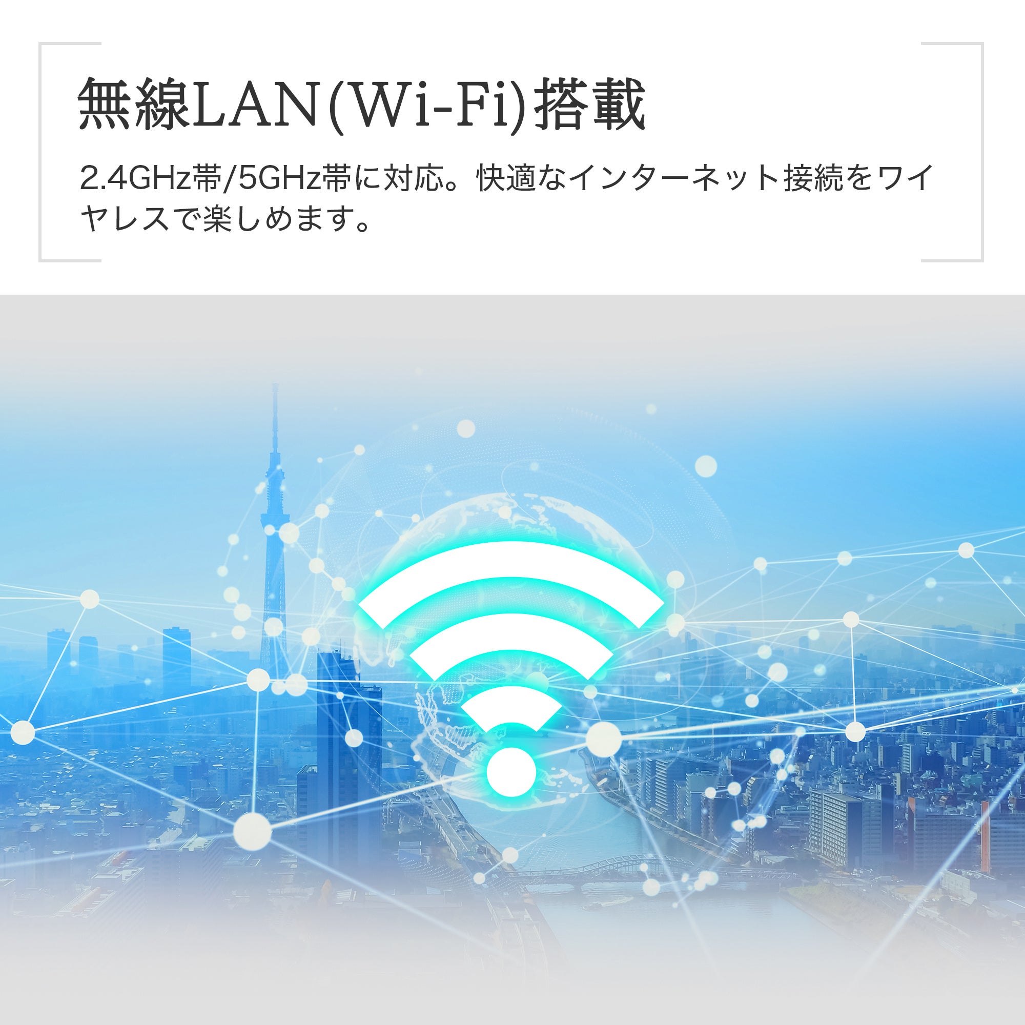 2.4GHz帯/5GHz帯に対応。快適なインターネット接続をワイヤレスで楽しめます。
