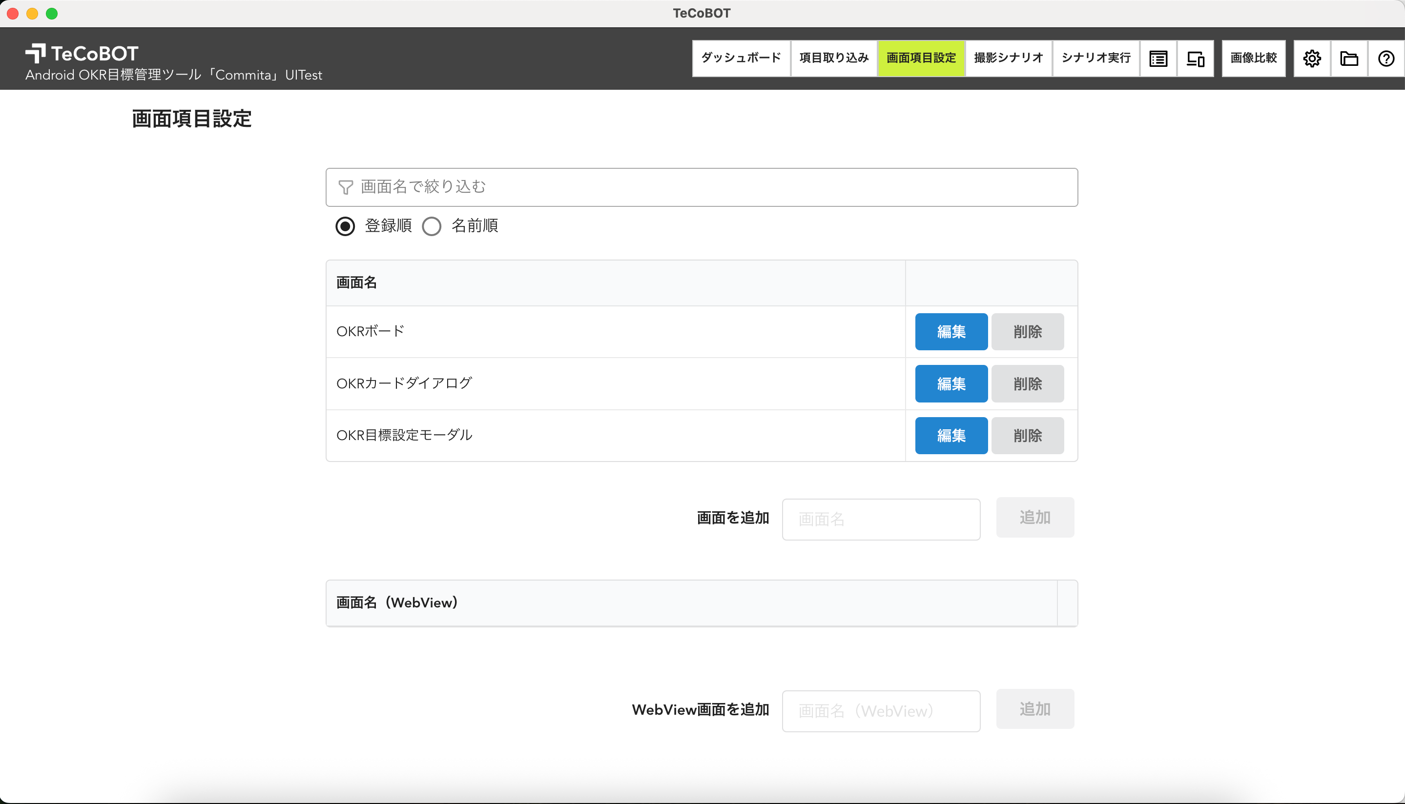 WebView項目取り込みの精度向上:WebViewコンテンツの画面項目を取り込む際、不要な要素(ロケーターが存在しないため操作できない画面項目)を取り込まないようフィルターを調整し、テスト作成の効率を向上させました。