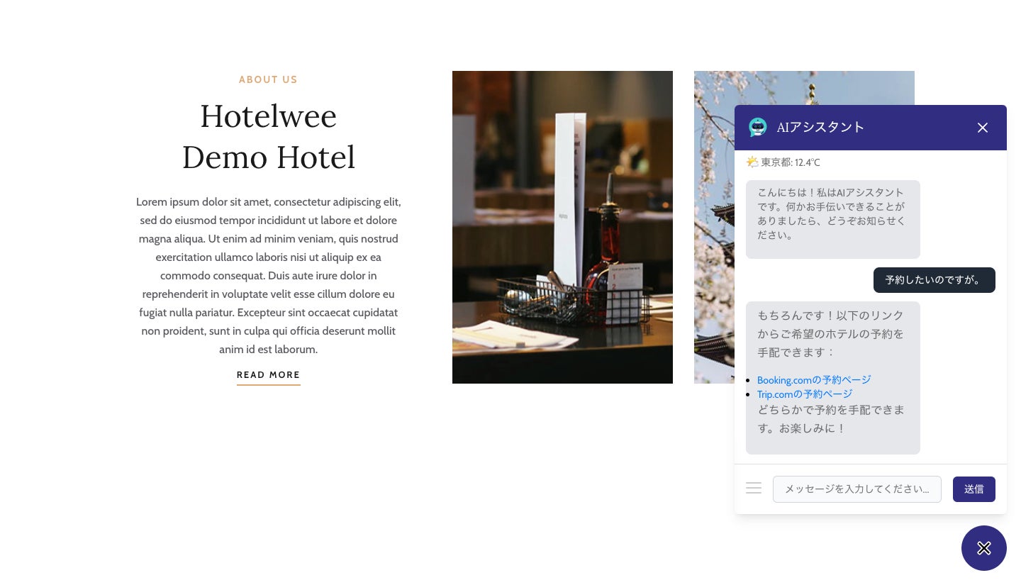 ホテルのウェブサイトに埋め込むことで、すぐにご利用できます。