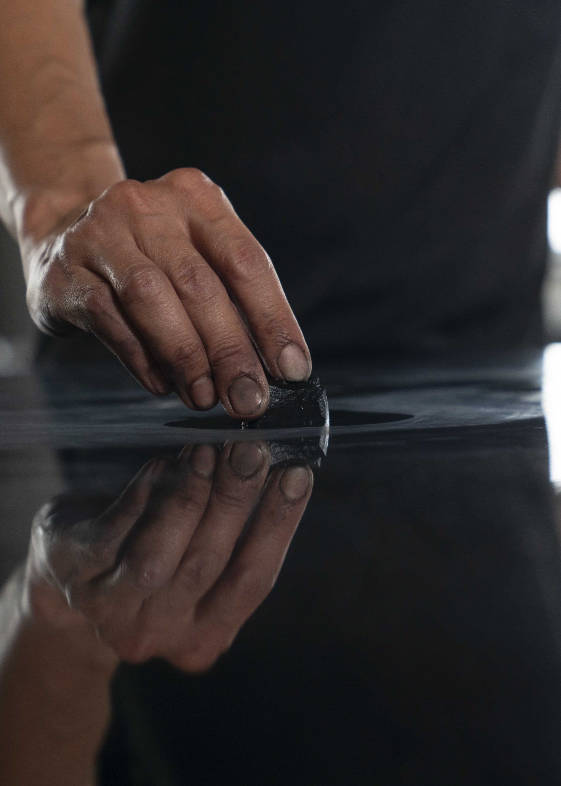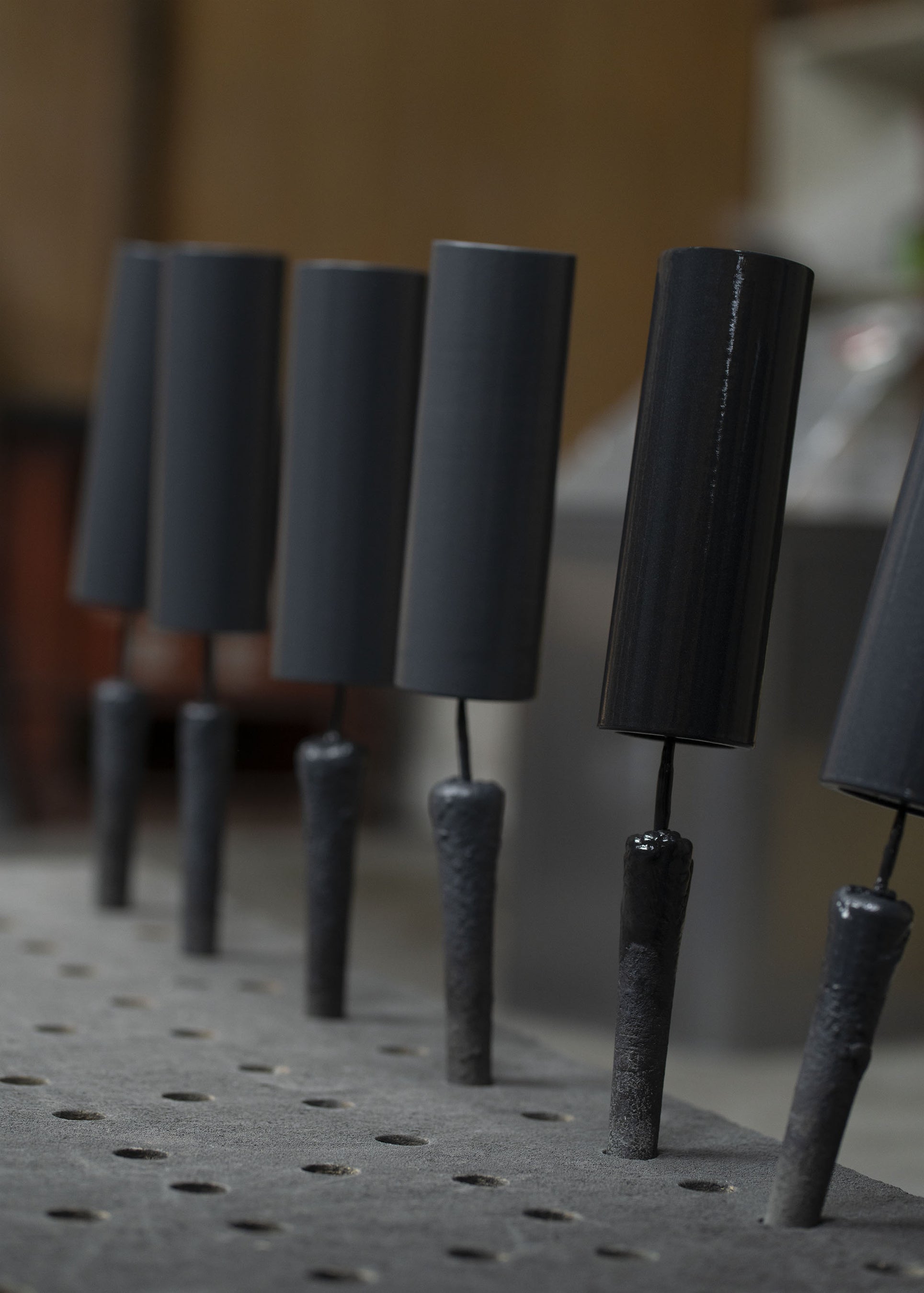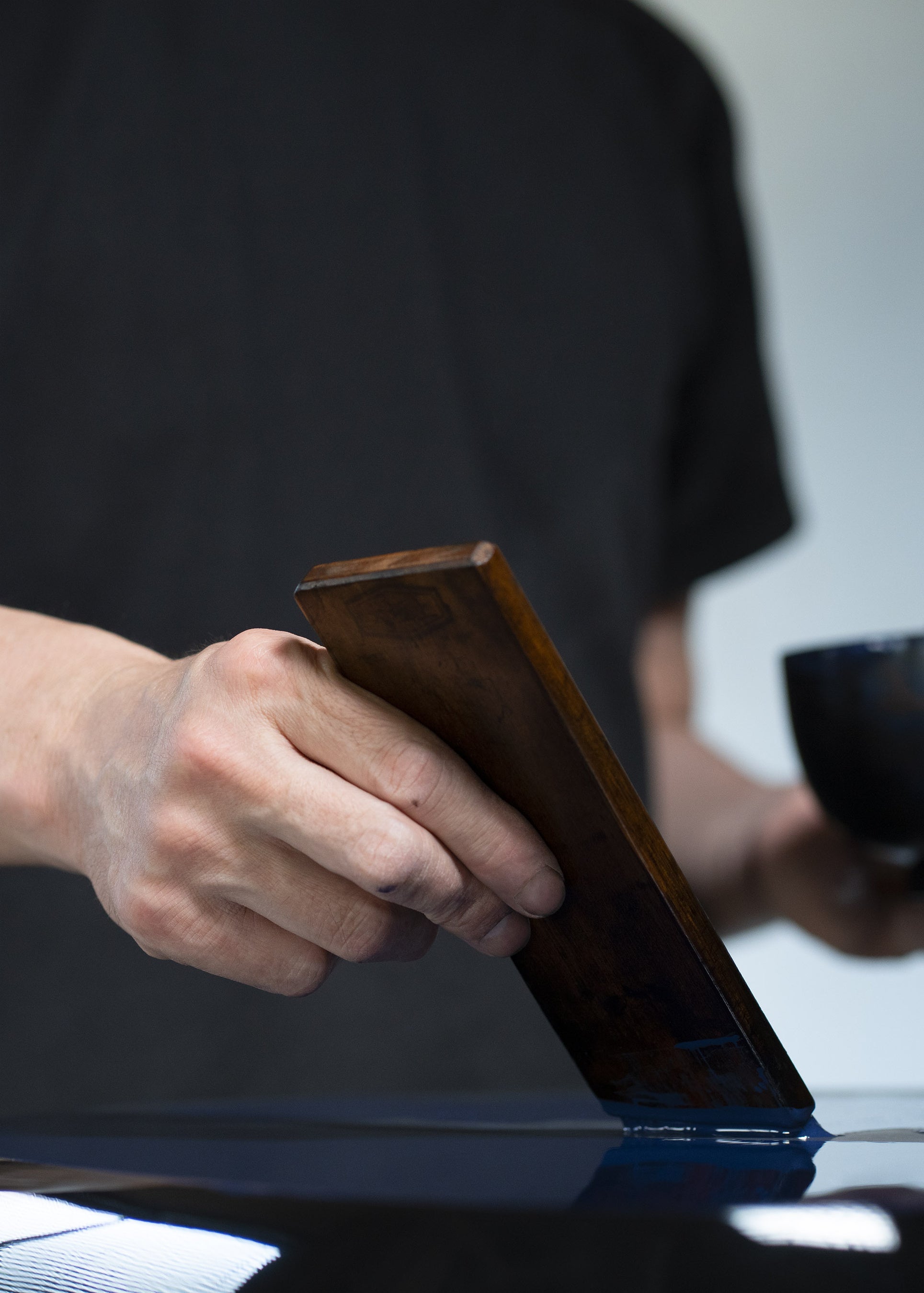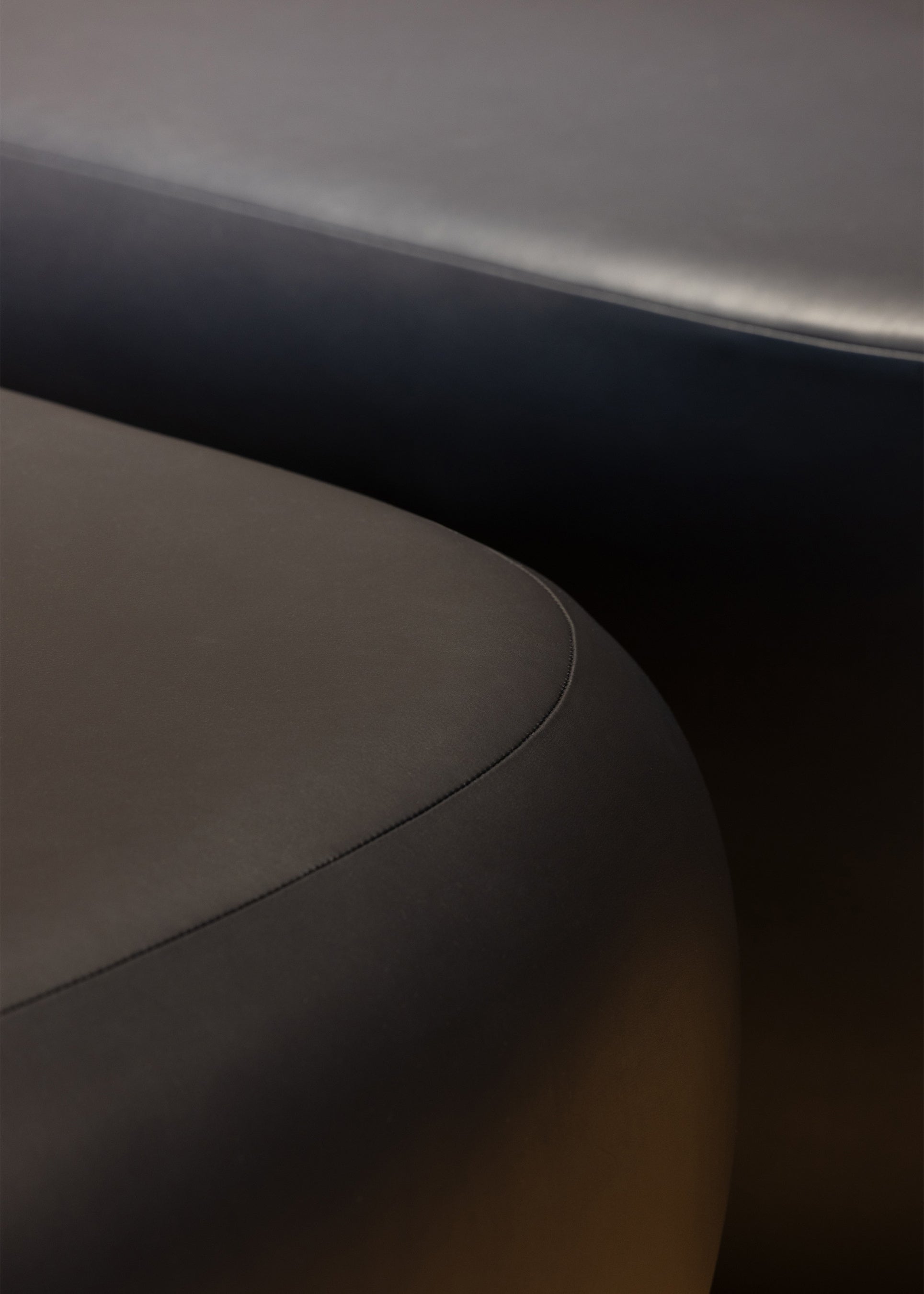 空間に配置された革製のスツールと並ぶ、漆塗の台座。様々な自由のフォルムを持つ、光沢感が美しいこの作品は1929年に創業の京都を代表する「塗師(ぬし)」の職人集団、「牧野漆工芸」によって手掛けられています。他の都市の二店舗にはない、東京店のためだけに作成した、天然漆と伝統的な技術の結晶となる特別な作品。メゾンがこだわりを持つ手作りの職人技を、日本という新たな舞台でも探求することで生み出されました。
