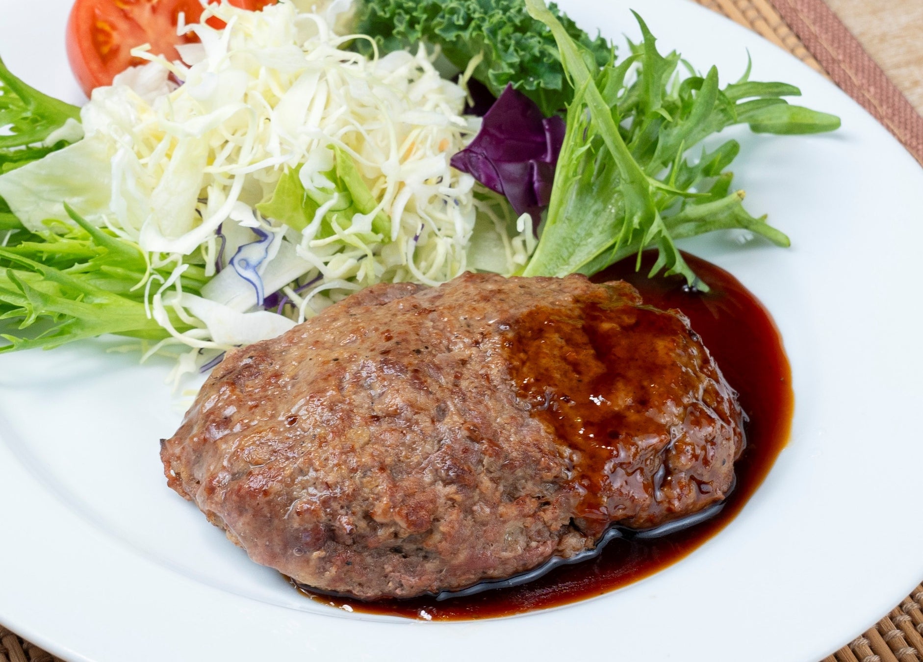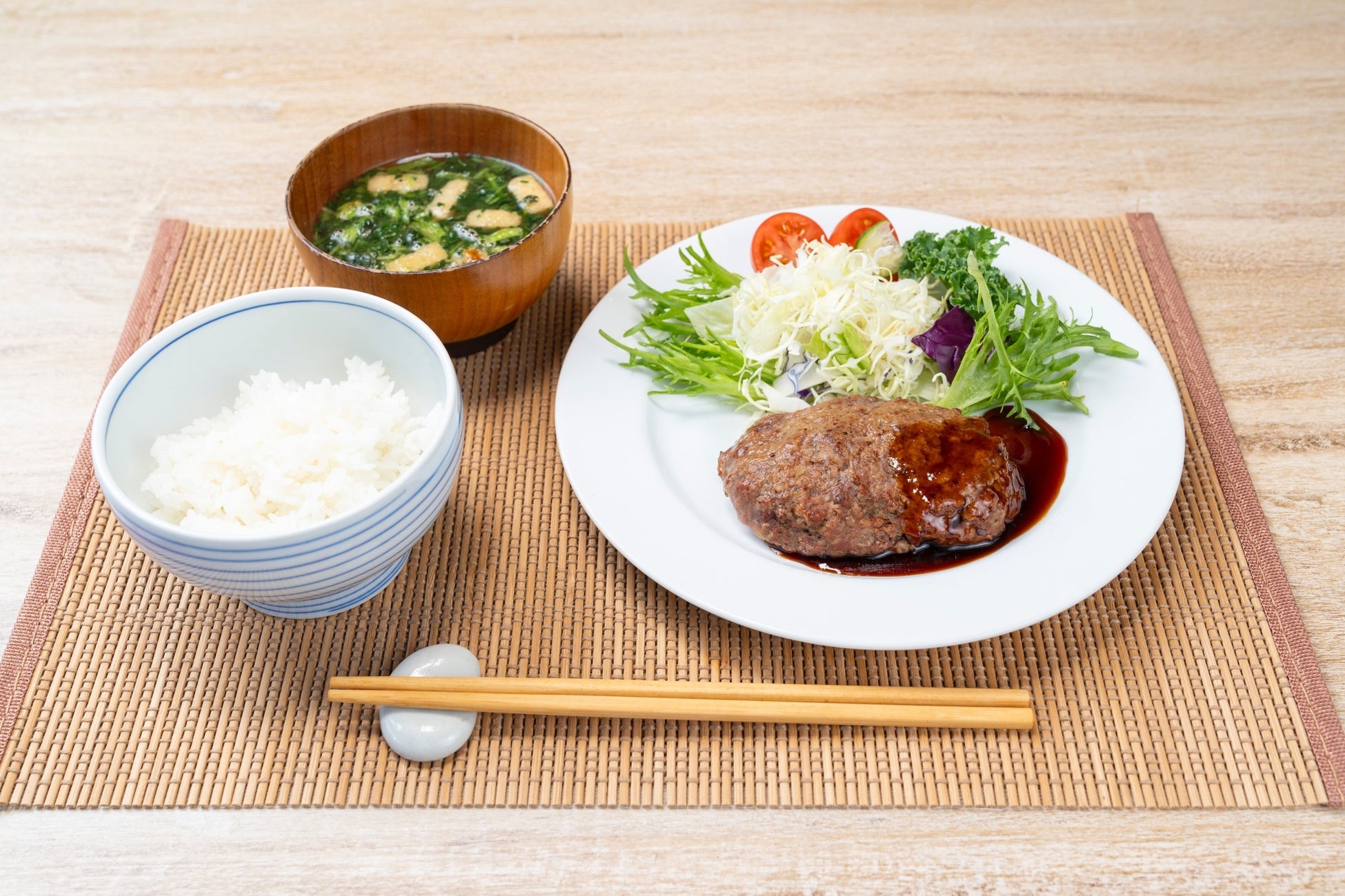 プレーンハンバーグ、ベーコンハンバーグセット