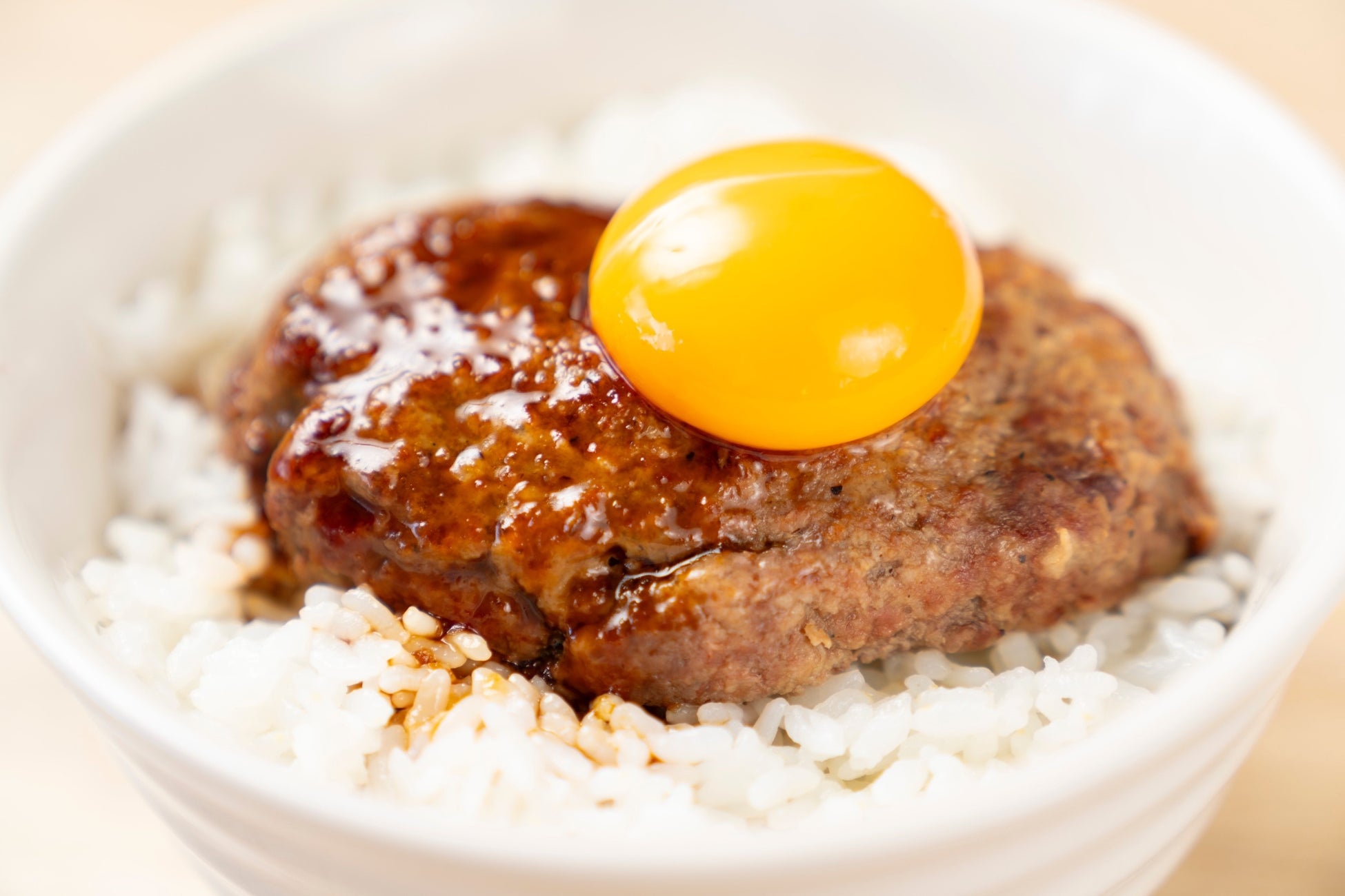 ハンバーグ丼に卵黄をのせて!