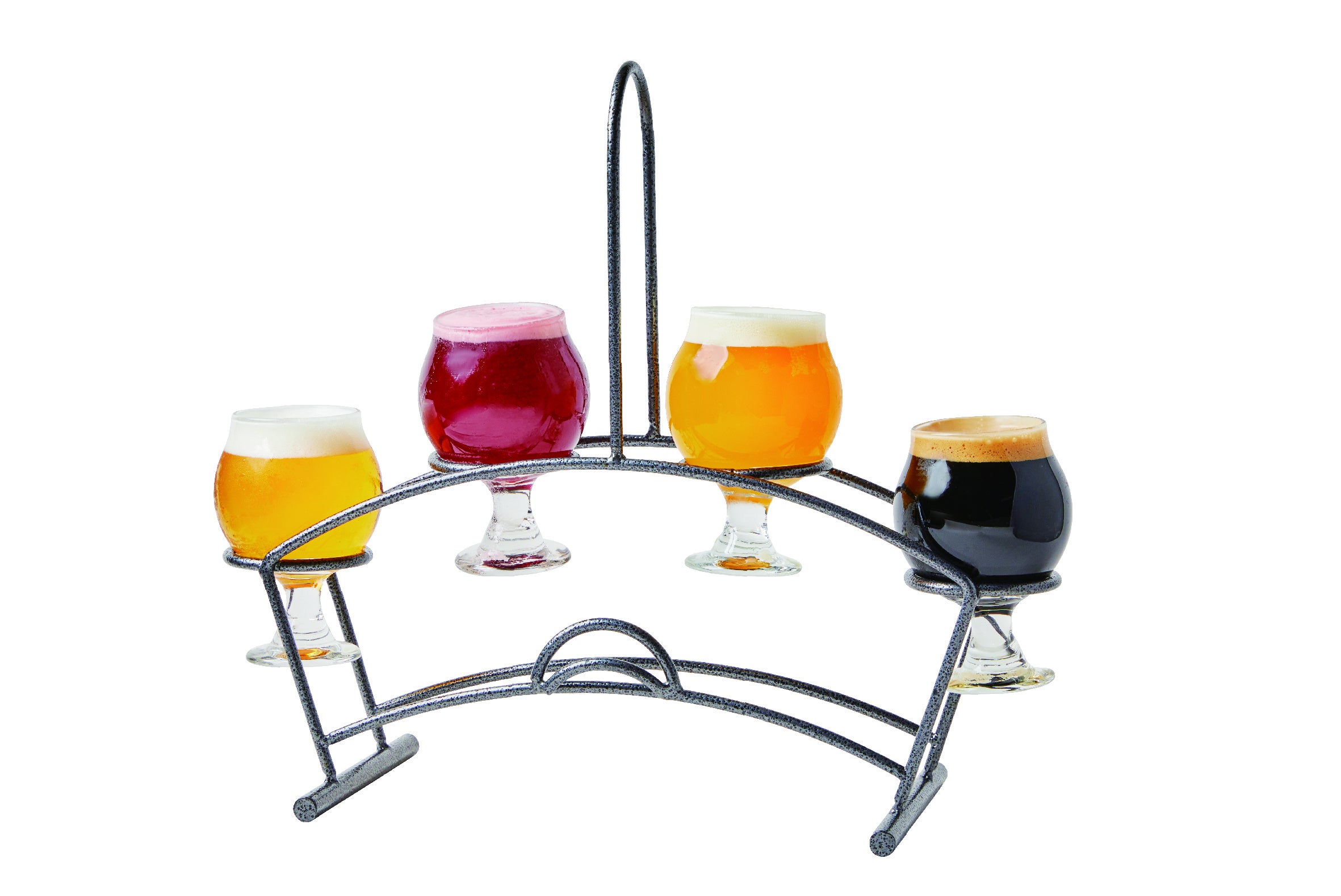 左から、ピルスナー 〈チェコ〉、フランボワーズ 〈ベルギー〉、マンゴー 〈スウェーデン〉、黒ビール 〈イギリス〉