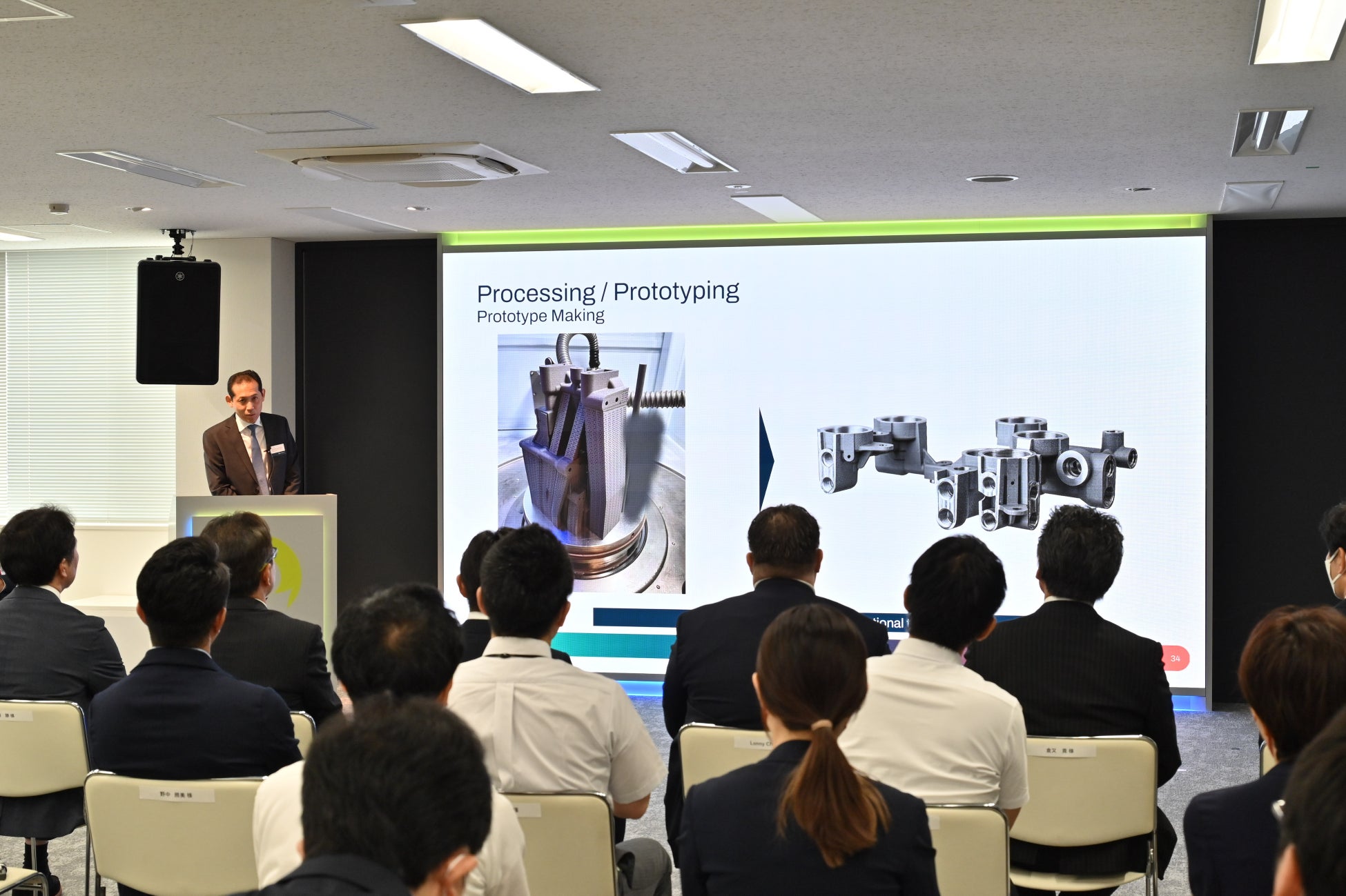 本発表会では、冒頭に最高経営責任者(CEO)のハンス・ディールティエンスと最高技術責任者(CTO)のヨハネス・ヘルミッヒが登壇、謝辞を伝えるとともに、同社の事業紹介を行いました。その後記念テープカット、エンジニアによる施設内解説ツアーを終え、Q&Aセッションを実施しました。