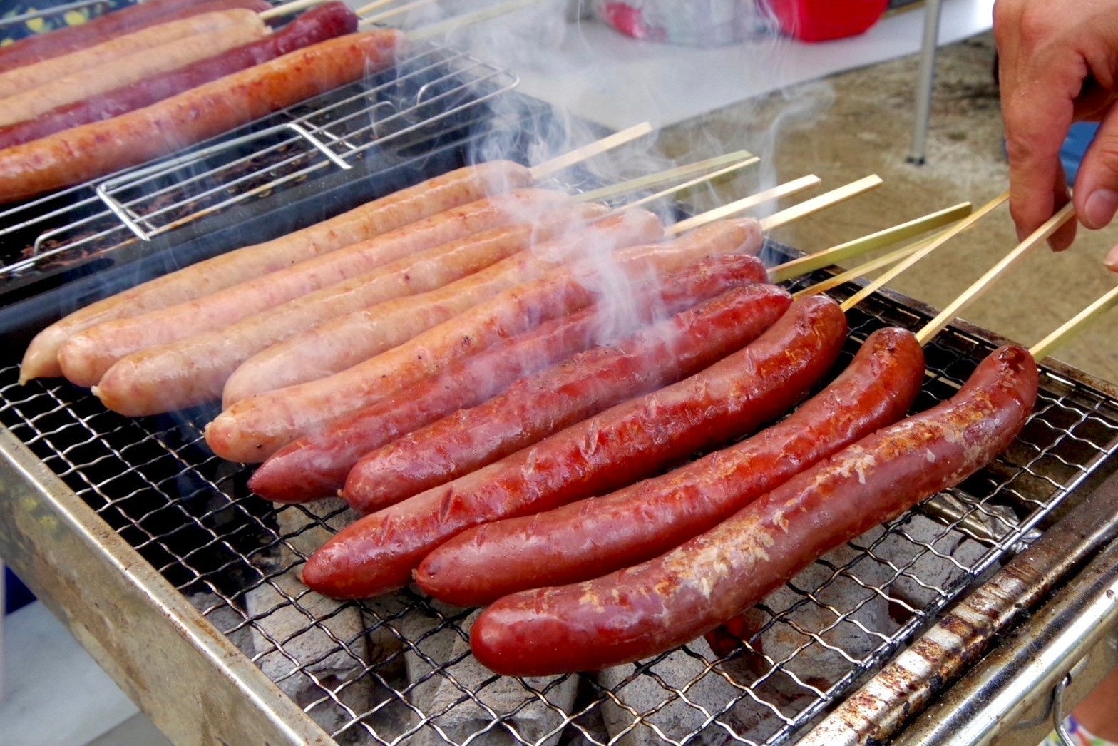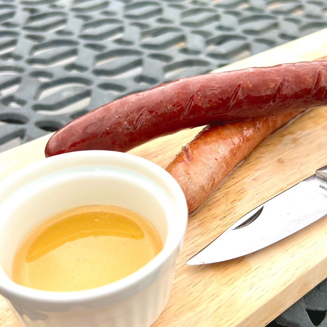 ここで、一手間加えるのが、自分流。ヨコザワテッパンで茹で上がったソーセージの表面に焼き色をつけ、皮がパリッと香ばしく仕上がる。ジューシーな鹿肉ソーセージが、さらに美味しくなっていく。