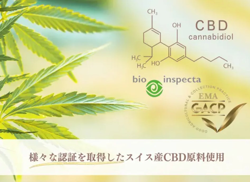 新商品のCBDオイルドロップに使用される原料は、GACP(Good Agricultural and Collection Practice for starting materials of herbal origin:ハーブ等の出発原料の適切な農業及び収集慣行)、スイス品質管理システム(優良認定を受けた古くからある認定企業)のISO認証、そしてbio inspectaのオーガニック認証を受けております。