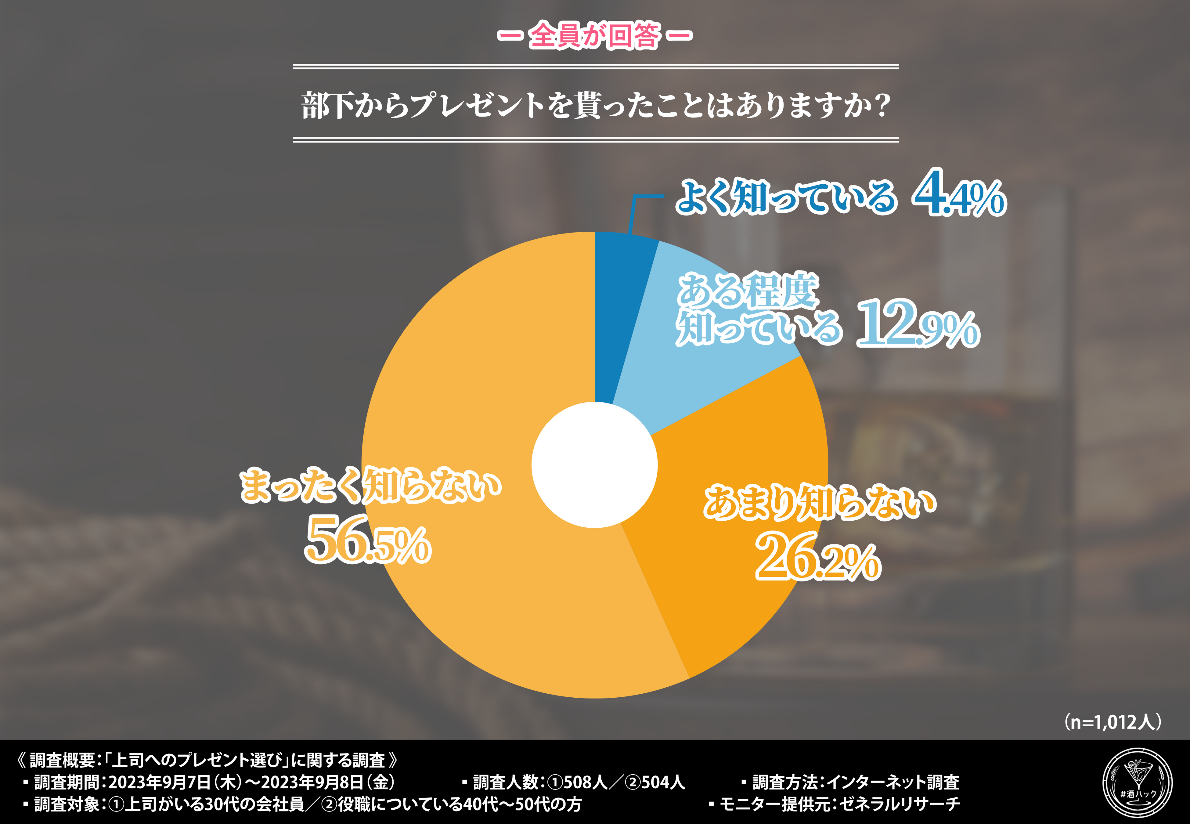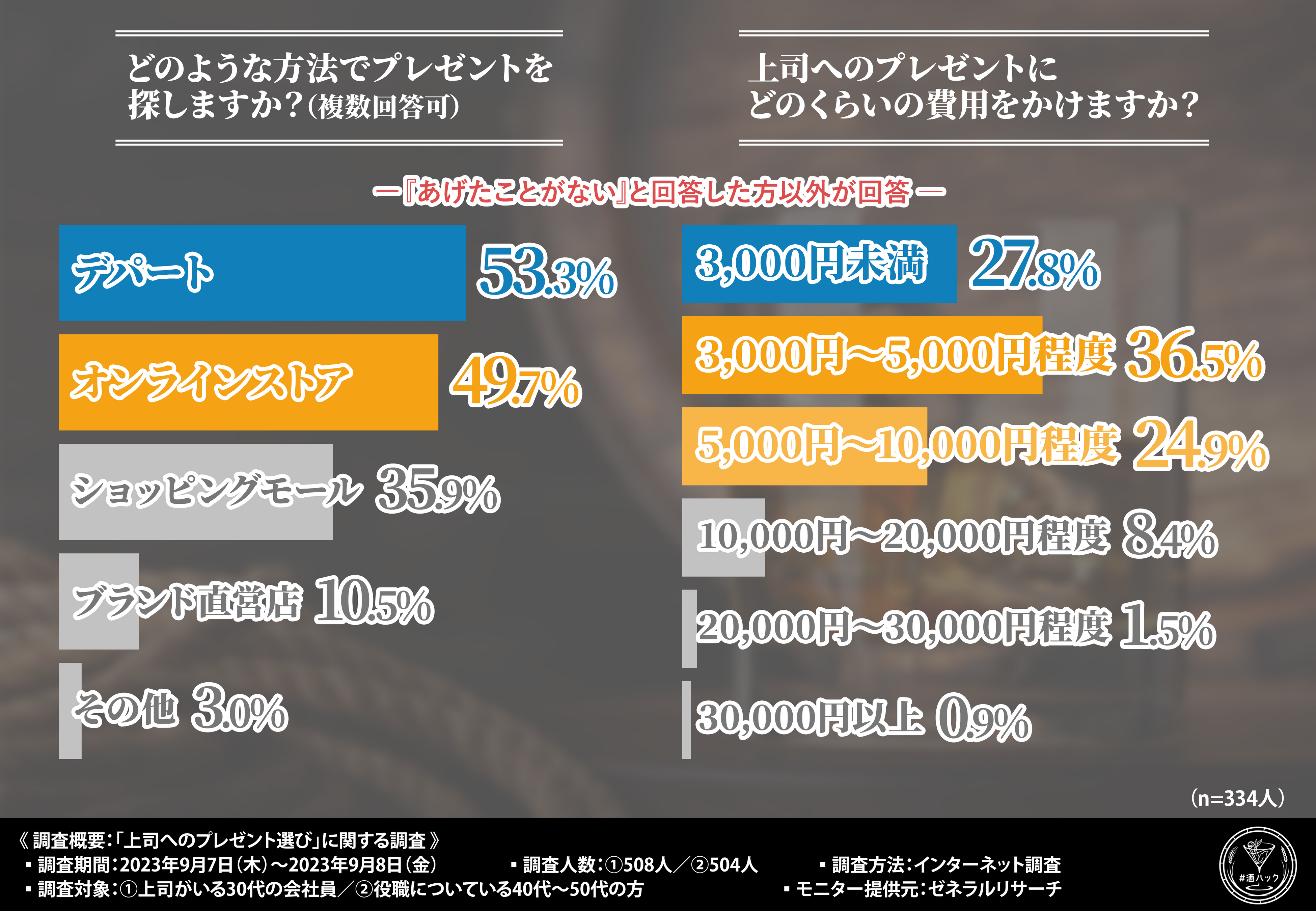 そこで今回、自分だけの樽熟成酒『#酒ハック』(https://sakehack.com/)を販売している酒ハックプロジェクト(SAKEHACK PROJECT)は、①上司がいる30代会社員/②役職についている40代~50代の方を対象に、「上司へのプレゼント選び」に関する調査を実施しました。