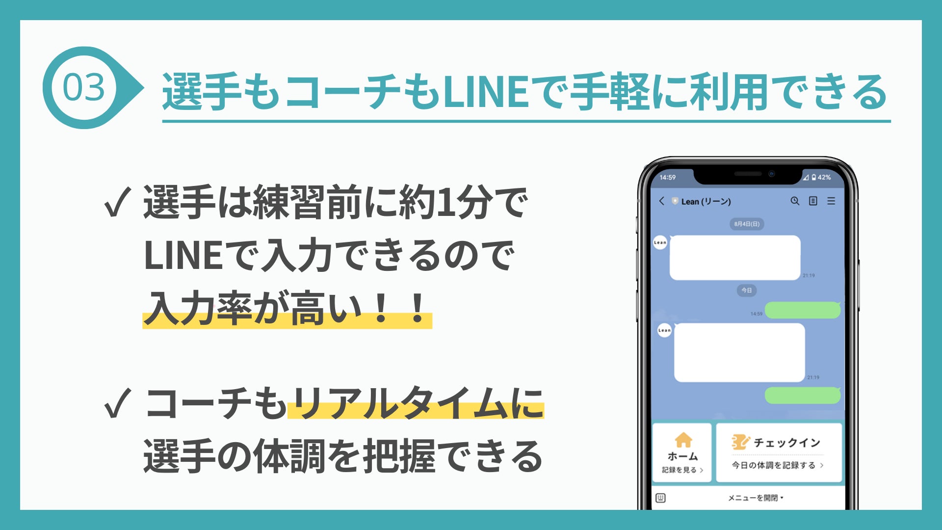 ③選手もコーチも、LINEで手軽に利用できる