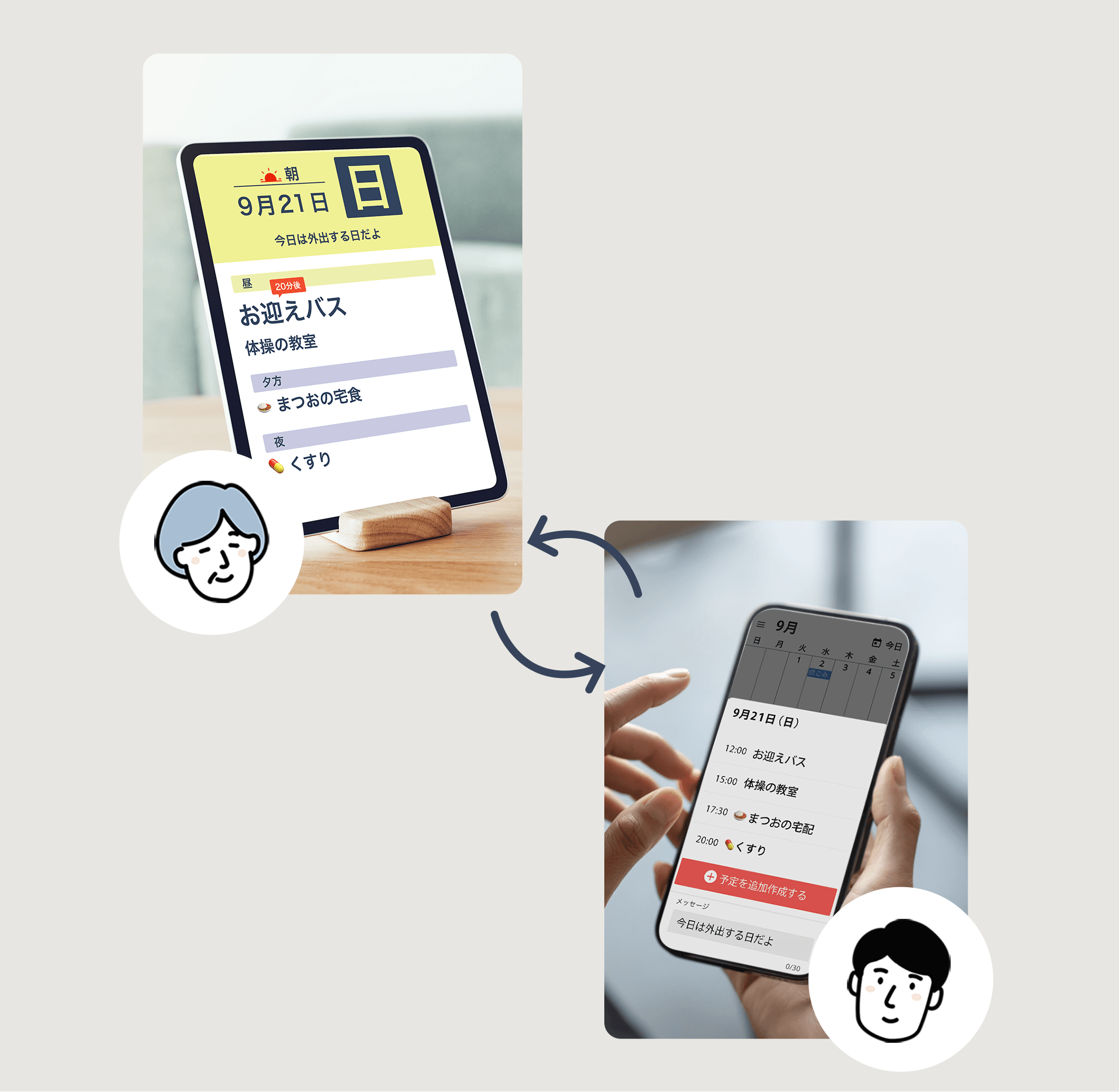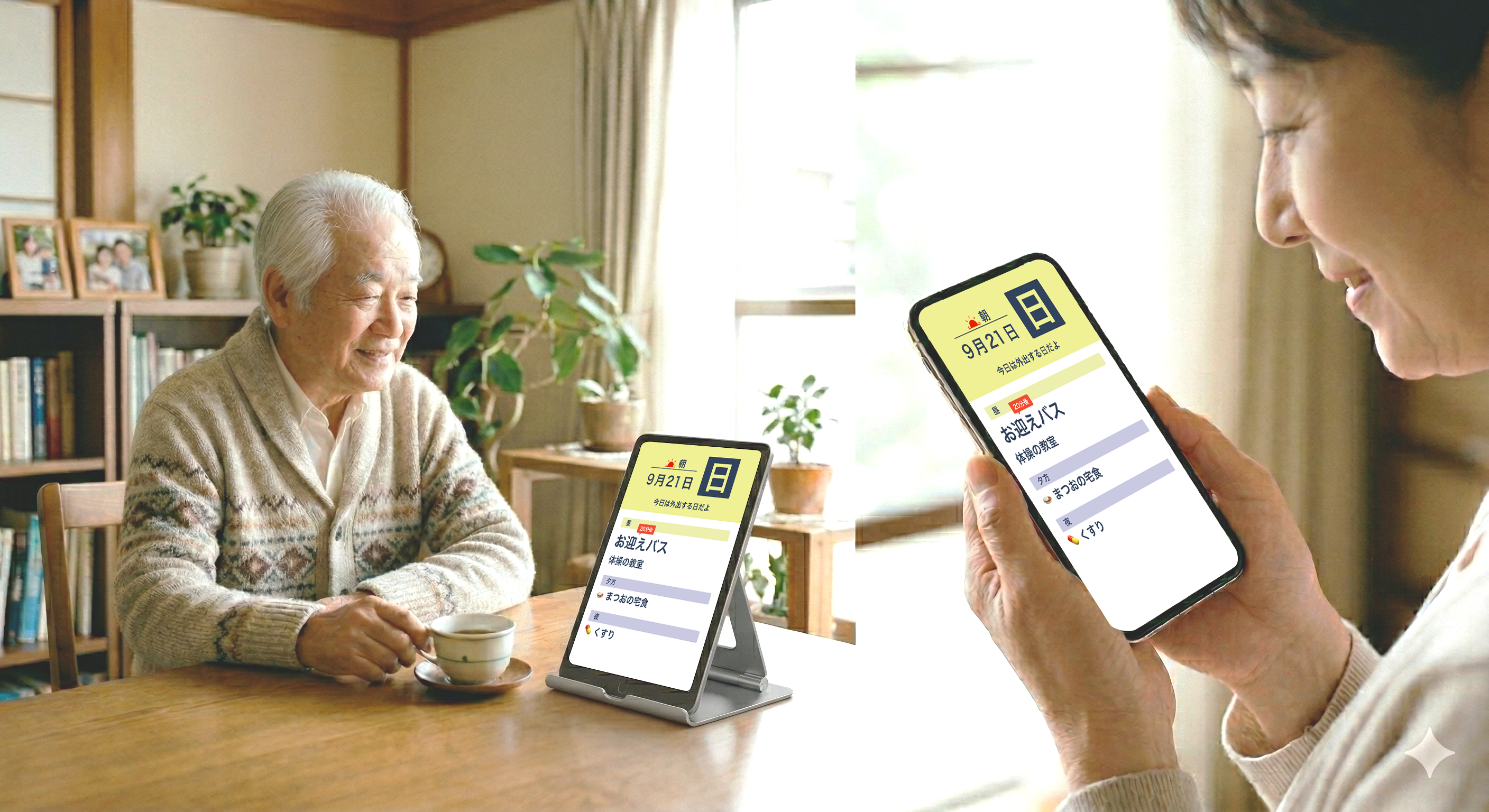 代わりに声かけ: 家族が入力する予定は、親御さんにとっては「この時間にこれをしてね」という優しいガイド。離れていても、隣で声をかけているような安心感を作り出します。