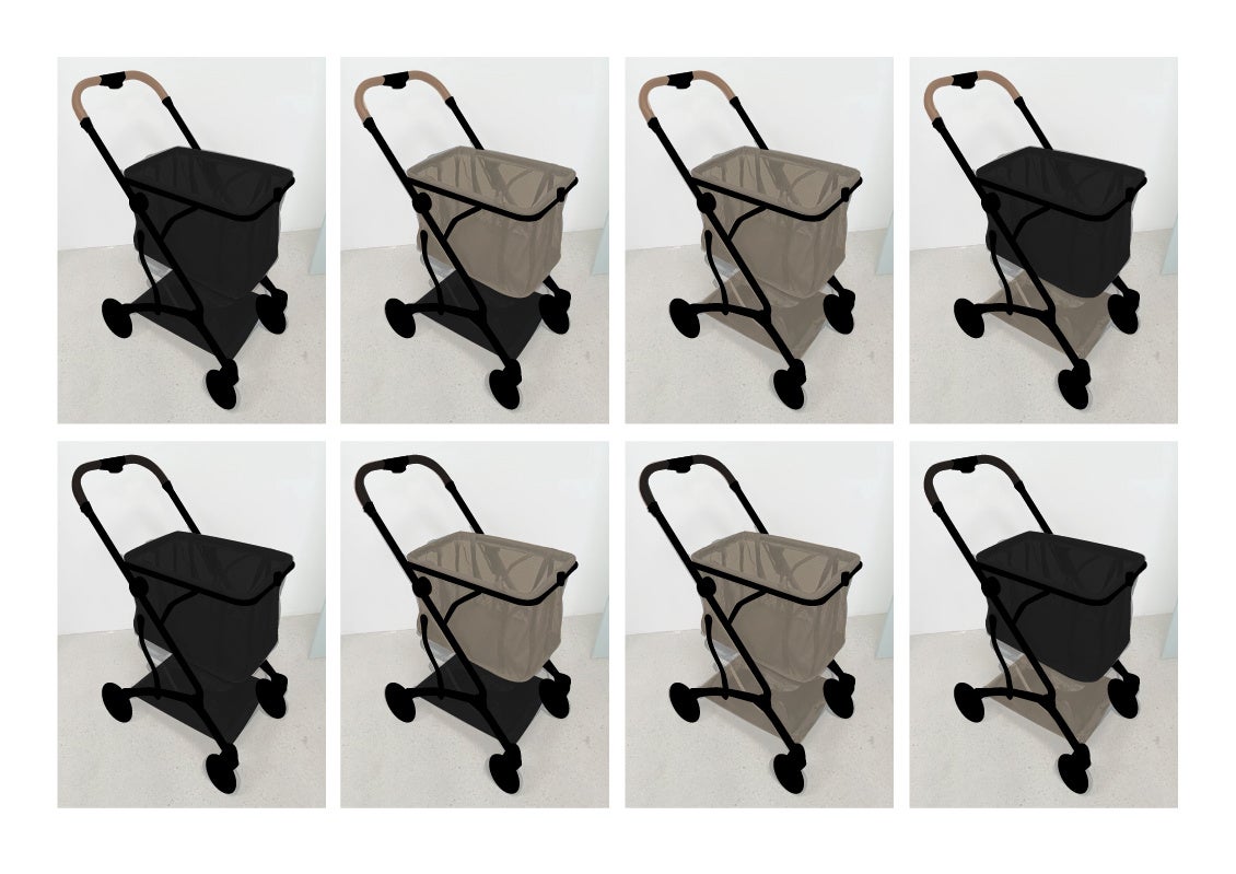 デザインはどんな方でも使いやすいように、ハンドル部分はグレージュでワンポイント、本体はブラックで統一し、年齢問わず合わせやすいシンプルなデザインに。幾度となく試行錯誤を繰り返して、理想のショッピングカートが完成しました。