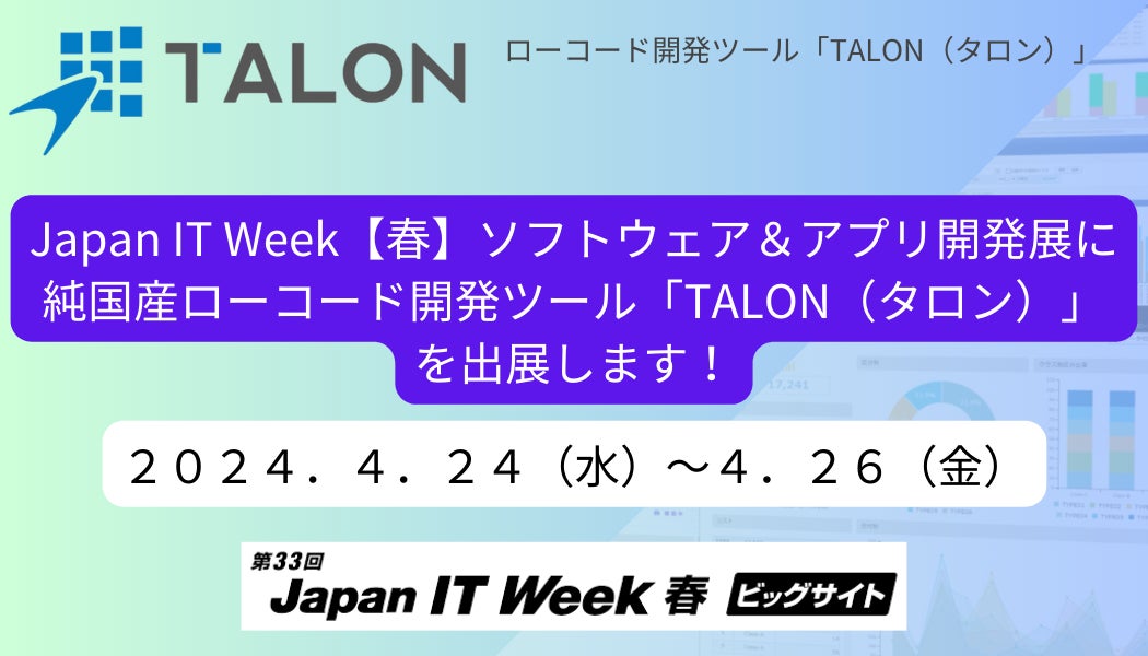 展示会「Japan IT Week春 ソフトウェア&アプリ開発展」に純国産ローコード開発ツール「TALON(タロン)」を出展します!(2024/4/24~26)