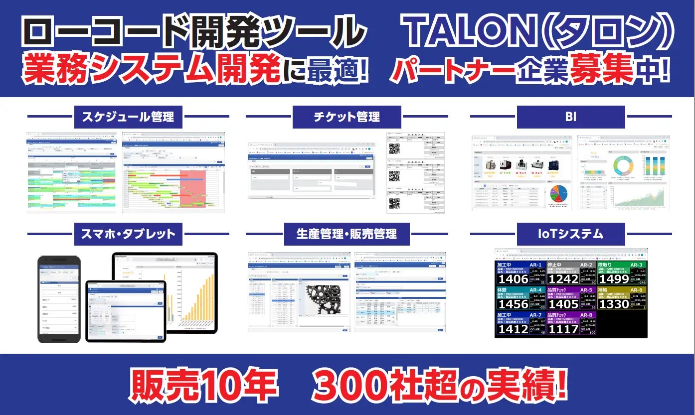 ▼純国産ローコード開発ツール「TALON(タロン)」製品ページ