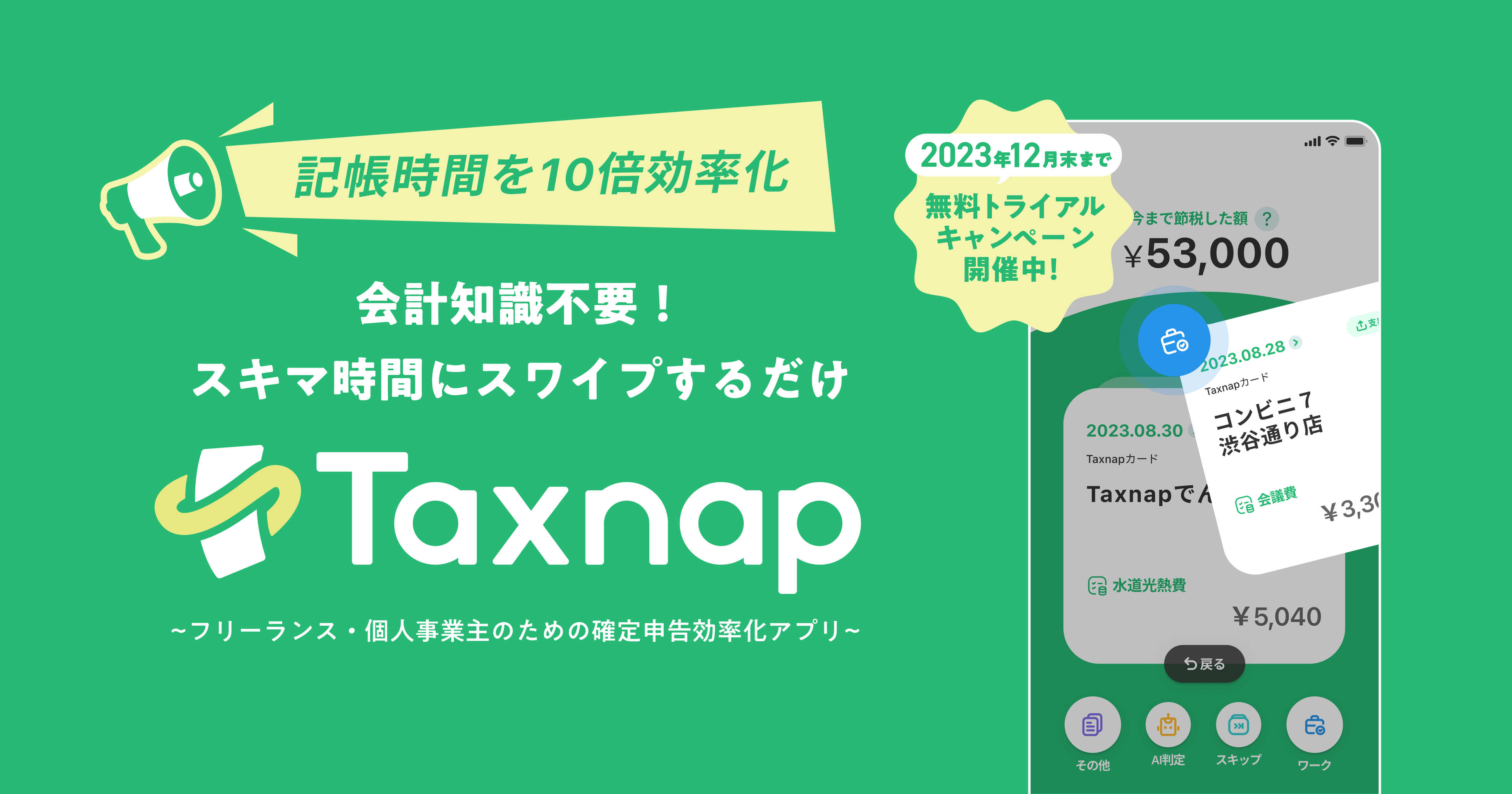 Taxnapはフリーランス・個人事業主・副業人材の確定申告の負担を軽減する、『確定申告効率化アプリ』です。