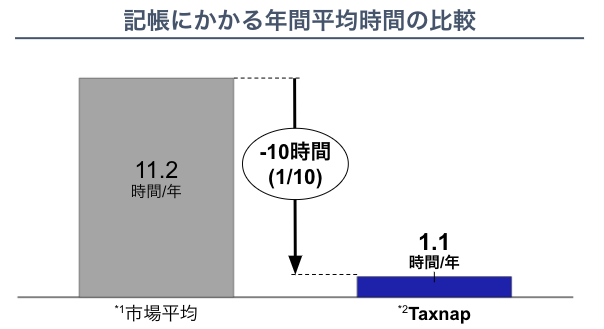 1取引あたりの平均記帳時間 Taxnap:5秒、市場平均:60秒