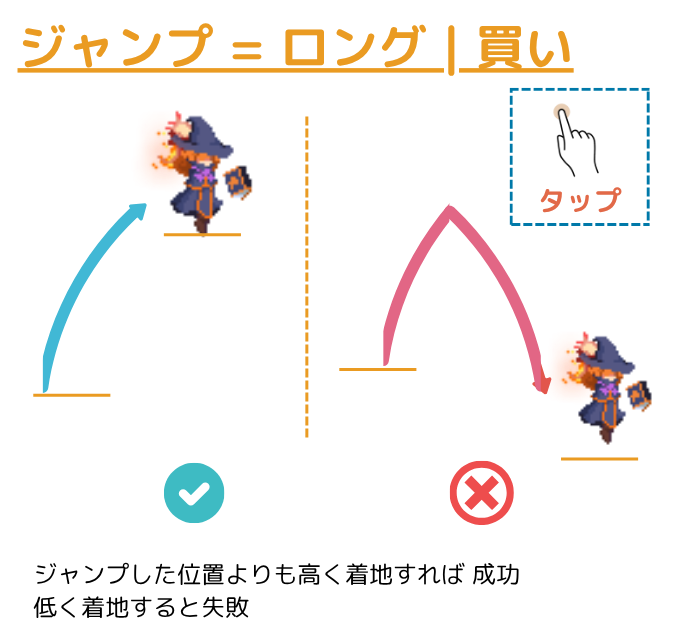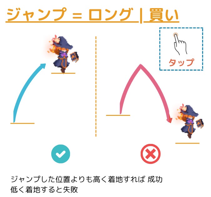 ・ゲームでのジャンプは投資でいう「買い」、着地で「売り」となる新感覚なゲームルールを搭載